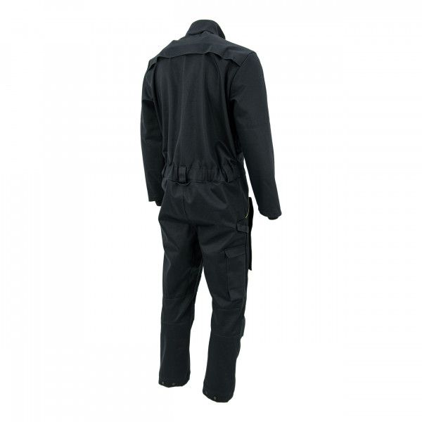 Комбинезон застёгивается на двухзамковую молнию. Сверху застёжка прикрыта защитным клапаном на липучках. Высокий воротник-стойка с регулировкой по объёму защищает шею от пыли и брызг расплавленного металла. В области подмышек и на лопатках есть вентиляционные отверстия. Для дополнительной защиты от нагрева и брызг предусмотрены «внутренние рукава» с эластичными манжетами из огнестойкого трикотажного полотна. Резинка в поясе и шлёвки под ремень обеспечат удобную посадку. Для безопасной работы добавлены отделения под наколенники. Низ брючин регулируется по объёму с помощью кнопок. Также есть возможность увеличить длину комбинезона на 5 см за счёт двойной подгибки.