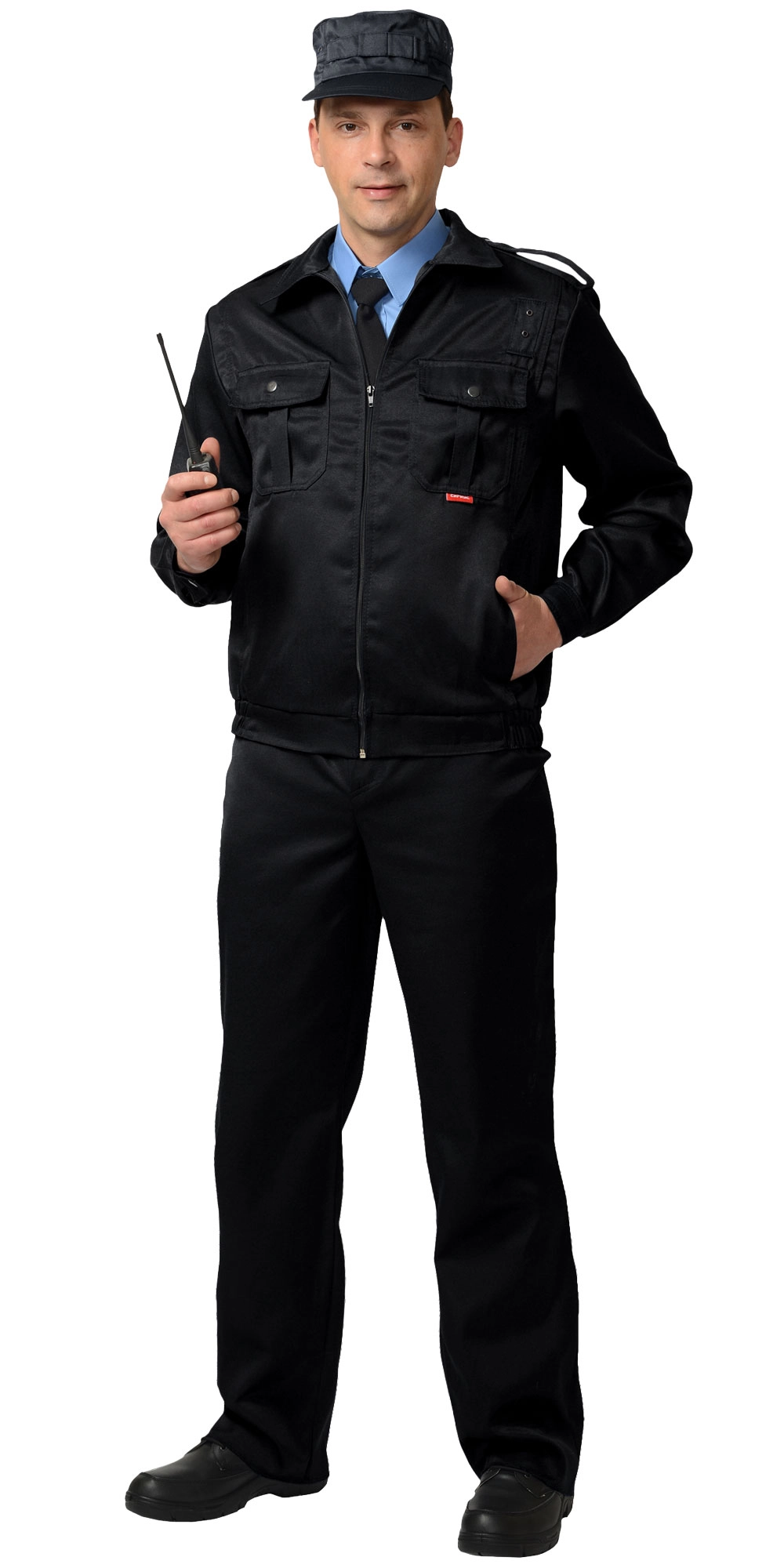 Тк. смесовая с ВО пропиткой, пл. 210 г/кв.м. Куртка с притачным поясом, центральной застёжкой-"молнией", нижними прорезными и верхними накладными карманами. На правой полочке шлёвка для нагрудного знака, по плечевым швам погоны. Брюки классического покроя. ТУ 8550-001-81391241-2008.