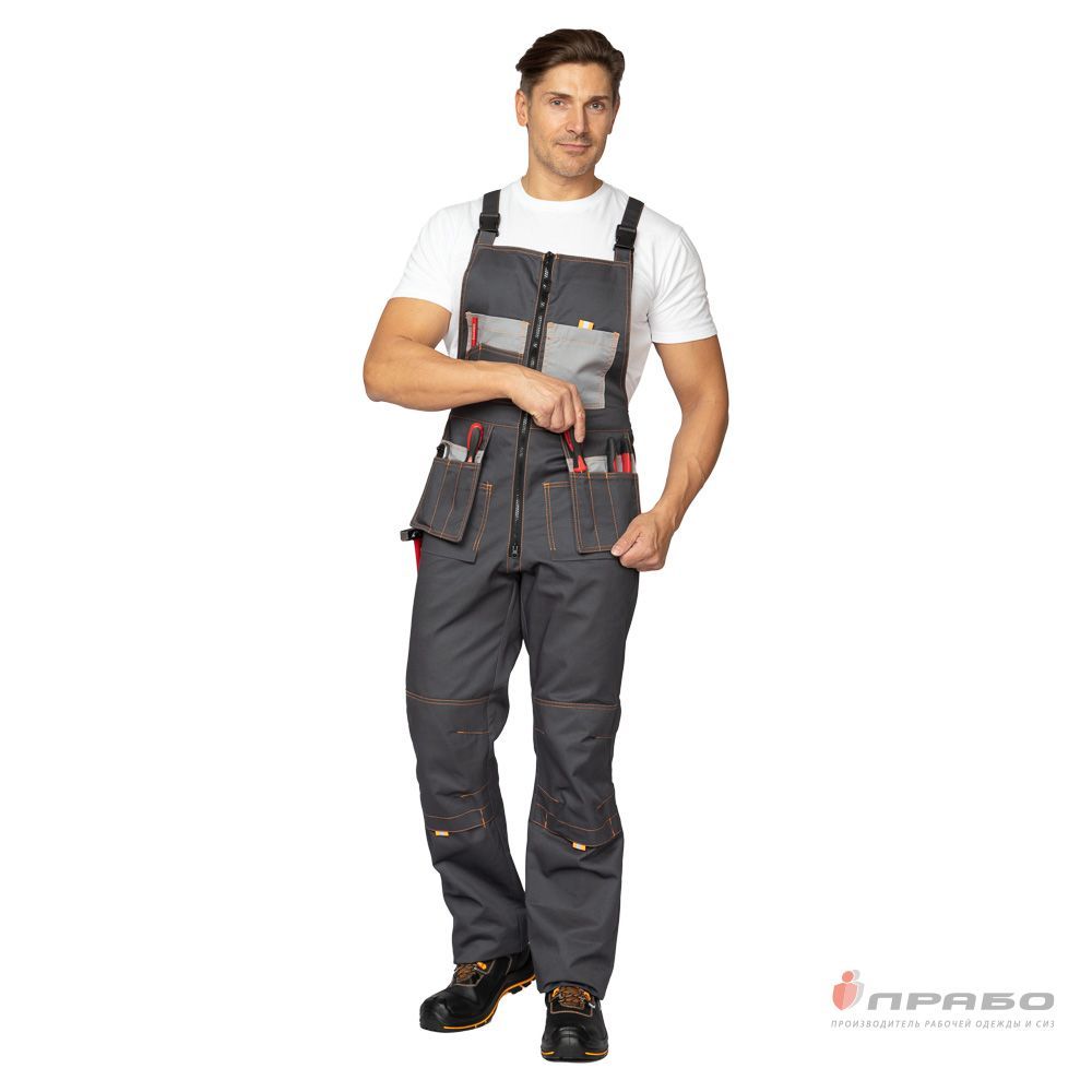 Карманы. Куртка: верхние накладные: слева двойной усиленный карман с отделением для телефона и карандаша; справа двойной карман с клапаном и два открытых кармана для мелких деталей; 2 боковых нижних кармана. Входы в карманы дополнены ранцевой лентой со светоотражающим элементом для удобного расстёгивания. Полукомбинезон: 2 нагрудных накладных кармана: справа — двухслойный, верхний — из двух отделений; слева — с застёжкой на контактную ленту; на передних половинах накладные карманы, навесные трёхслойные карманы, верхний слой из трёх отделений; задние накладные карманы: слева — двойной накладной; справа на бедре — карман для инструментов.