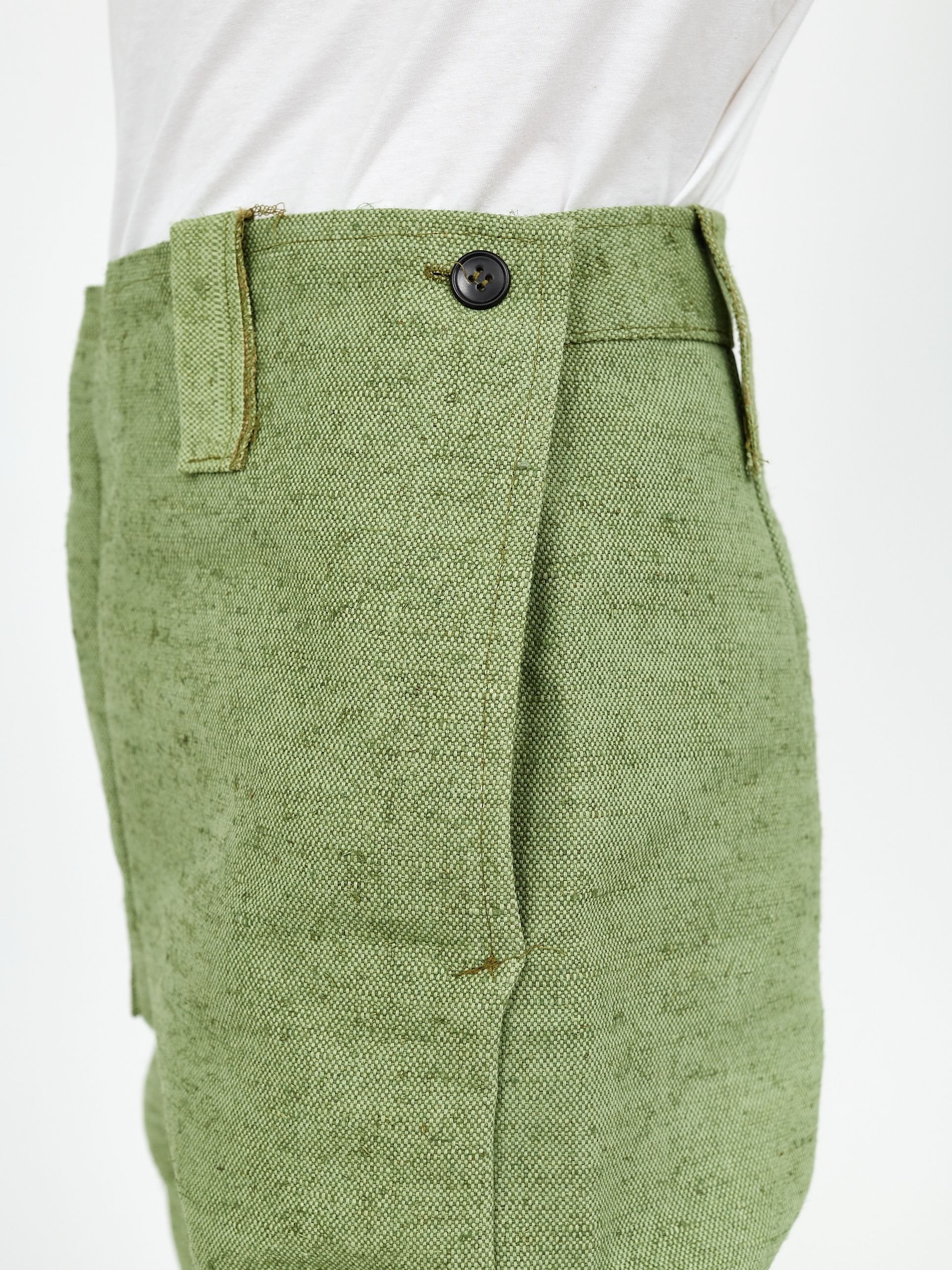 Состав материала включает лен и хлопок в соотношении 50/50. Такая ткань обладает высокой прочностью и износостойкостью. Подкладка выполнена из хлопковой бязи.