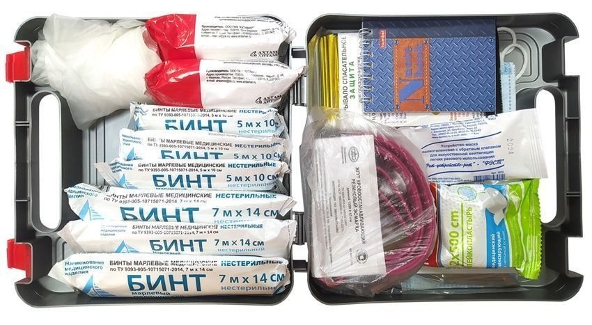Аптечка изготовлена в соответствии с приказом Министерства здравоохранения Российской Федерации от 24.05.2024 г. №260н