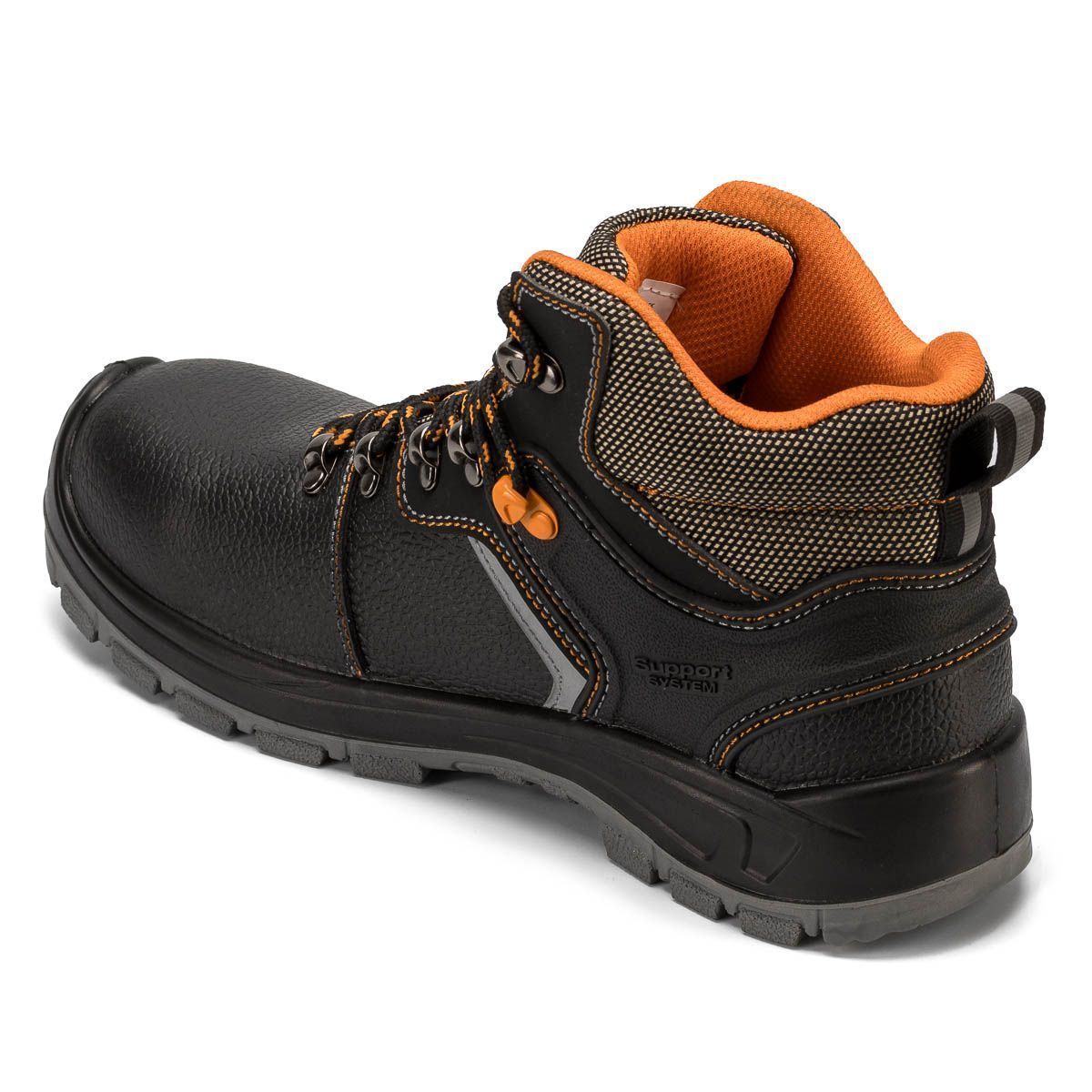 Ботинки "ORANGE PROFI" предназначены для эксплуатации в помещениях и сезонной носке на открытом воздухе. Верх обуви комбинированный – союзка, нижняя часть берца и задинка из натуральной кожи, язычок, полуглухой клапан и верхняя часть берца - из прочного текстиля. Вставка из ТПУ в пяточной части, обеспечивает дополнительную прочность, фиксацию и поддержку стопы. На берцах и заднике используются светоотражающие элементы. Подкладка трикотажная. с отличными гигиеническими свойствами. Вкладная стелька съемная, анатомическая. Мягкий кант, полуглухой клапан и мягкий язычок обеспечивают хорошее прилегание и защиту от попадания посторонних предметов внутрь обуви. В обуви применена система быстрой шнуровки. Для защиты от ударов в носочной части установлен композитный подносок (200 Дж). Защиту стопы от проколов обеспечивает кевларовая стелька (1200Н). Подошва двухслойная ПУ/ТПУ, устойчивая к воздействию химических факторов, обладающая высокой прочностью и износостойкостью, отличными амортизирующими свойствами.