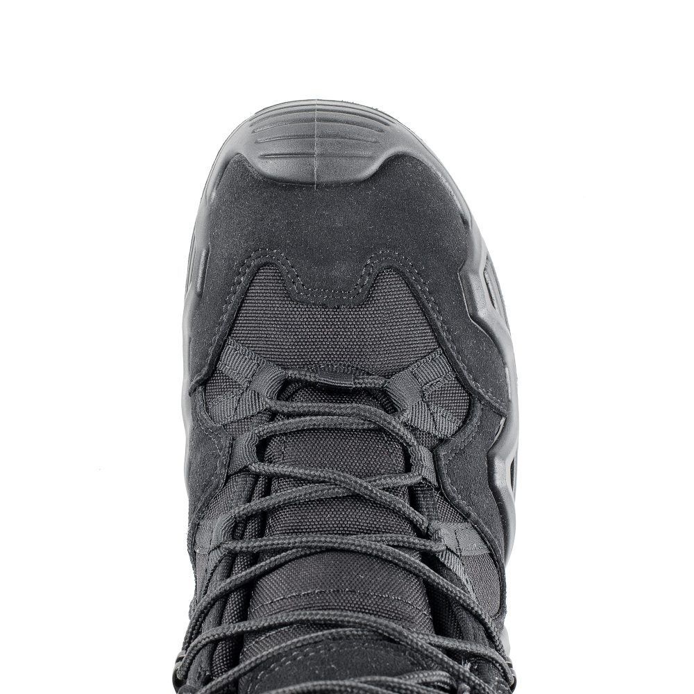 В верхней части ботинка разработан специальный дизайн петель для ускоренной шнуровки и фиксации затяжки шнурка, а также расположен глухой клапан с отворотом, где можно спрятать свободные концы шнурков.