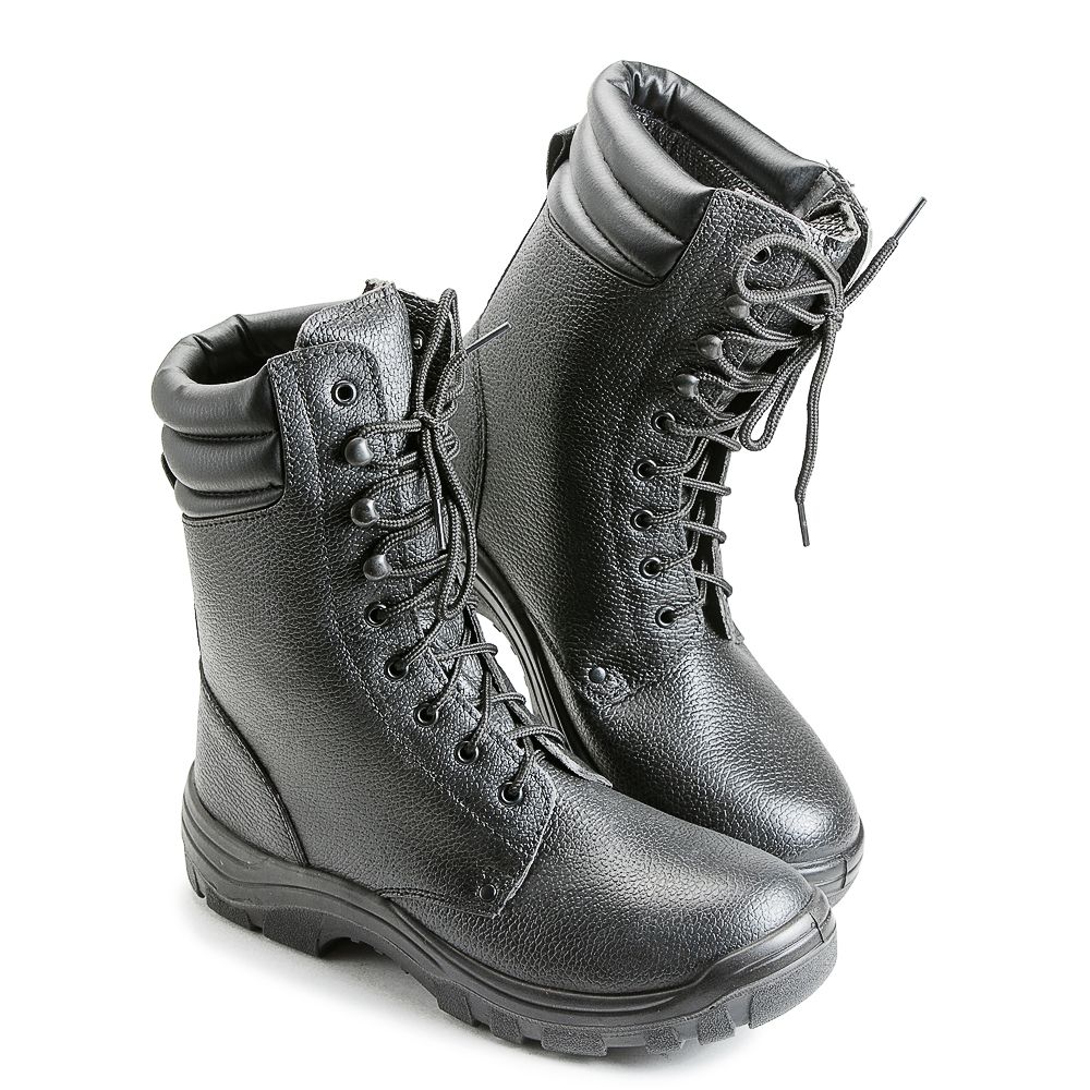 Ботинки хромовые с завышенными берцами, увеличенный мягкий кант и глухой клапан из эко-кожи, усиленный подносок из термопластического материала, жесткий задник из термопластического материала. Рекомендуется для работников охранных структур, подходят для активного отдыха.