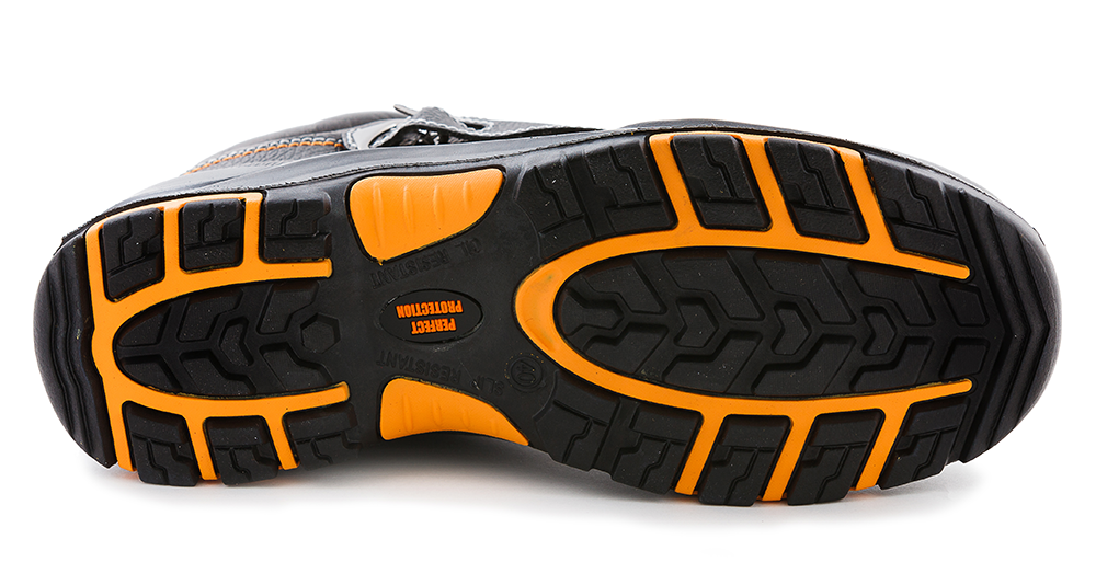 Эта обувь имеет защитный подносок из поликарбоната, который способен выдержать ударную нагрузку в 200 Дж, что равносильно падению груза массой 20 кг с высоты 1 метр.