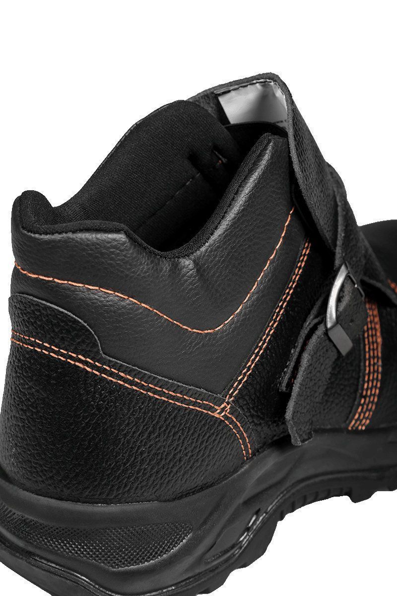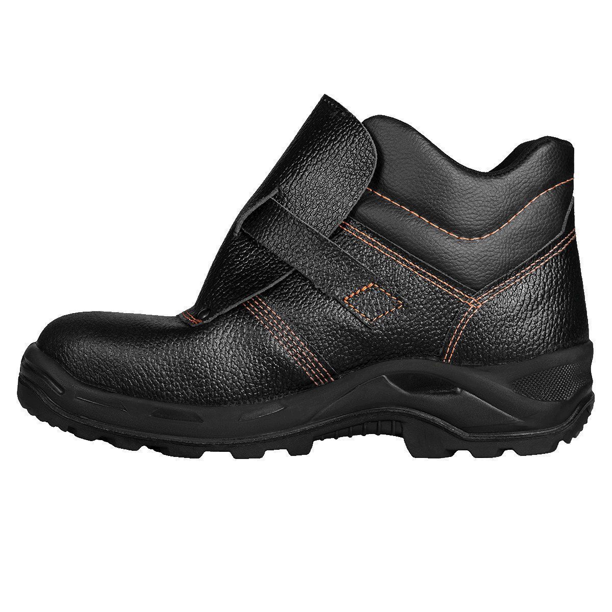 Ботинки сварщика — это специальная рабочая обувь из термостойкой кожи, обеспечивает защиту от нефти, нефтепродуктов, механических воздействий, растворов кислот концентрации до 20%, кратковременного (60 сек.) контакта с поверхностями, нагретыми до температуры 300°С, от искр, брызг расплавленного металла, окалины, от скольжения по зажиренным, мокрым и обледенелым поверхностям, от общих производственных загрязнений. Они имеют укреплённый металлический подносок (200 Дж) для защиты от ударов и проколов, термостойкую двухслойную подошву (ПУ/нитрил) с МБС, КЩС свойствами. Дополнительная накладка (клапан) из натуральной кожи закрывает глухой клапан из эластичной резинки, предотвращая попадание внутрь обуви окалины и брызг расплавленного металла.