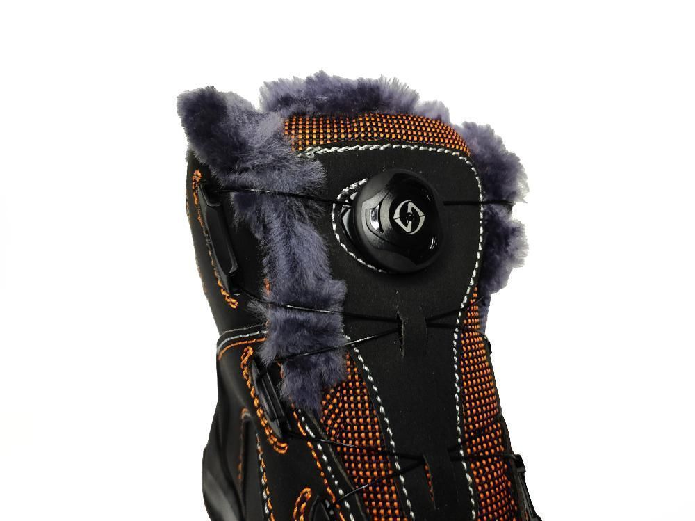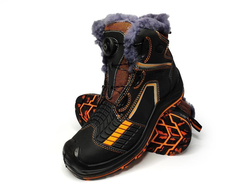 Верх ботинка имеет контрастные отделочно-скрепляющие строчки оранжевого цвета, как и подкладка, а также световозвращающие вставки для лучшей видимости в тёмное время суток.