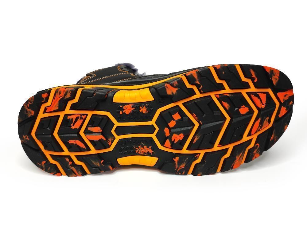 Ботинки "ORANGE PROFI" предназначены для эксплуатации в помещениях и сезонной носке на открытом воздухе. Верх обуви комбинированный – союзка, нижняя часть берца и задинка из натуральной кожи, язычок, полуглухой клапан и верхняя часть берца - из прочного текстиля. Вставка из ТПУ в пяточной части, обеспечивает дополнительную прочность, фиксацию и поддержку стопы. На берцах и заднике используются светоотражающие элементы. Подкладка трикотажная. с отличными гигиеническими свойствами. Вкладная стелька съемная, анатомическая. Мягкий кант, полуглухой клапан и мягкий язычок обеспечивают хорошее прилегание и защиту от попадания посторонних предметов внутрь обуви. В обуви применена система быстрой шнуровки. Для защиты от ударов в носочной части установлен композитный подносок (200 Дж). Защиту стопы от проколов обеспечивает кевларовая стелька (1200Н). Подошва двухслойная ПУ/ТПУ, устойчивая к воздействию химических факторов, обладающая высокой прочностью и износостойкостью, отличными амортизирующими свойствами.
