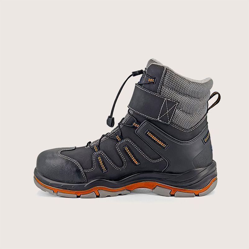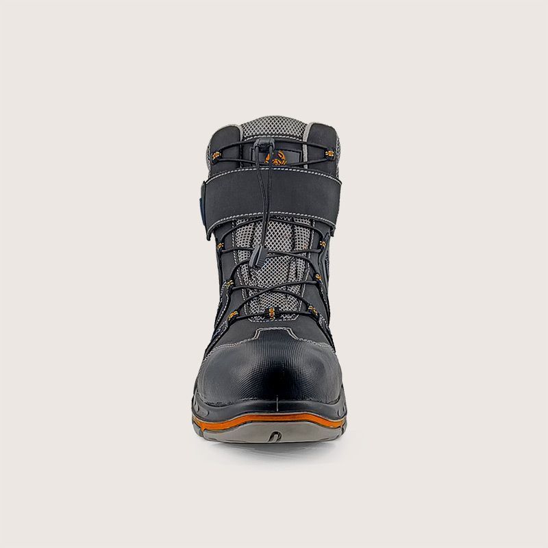 Эта обувь имеет защитный подносок из поликарбоната, который способен выдержать ударную нагрузку в 200 Дж, что равносильно падению груза массой 20 кг с высоты 1 метр.