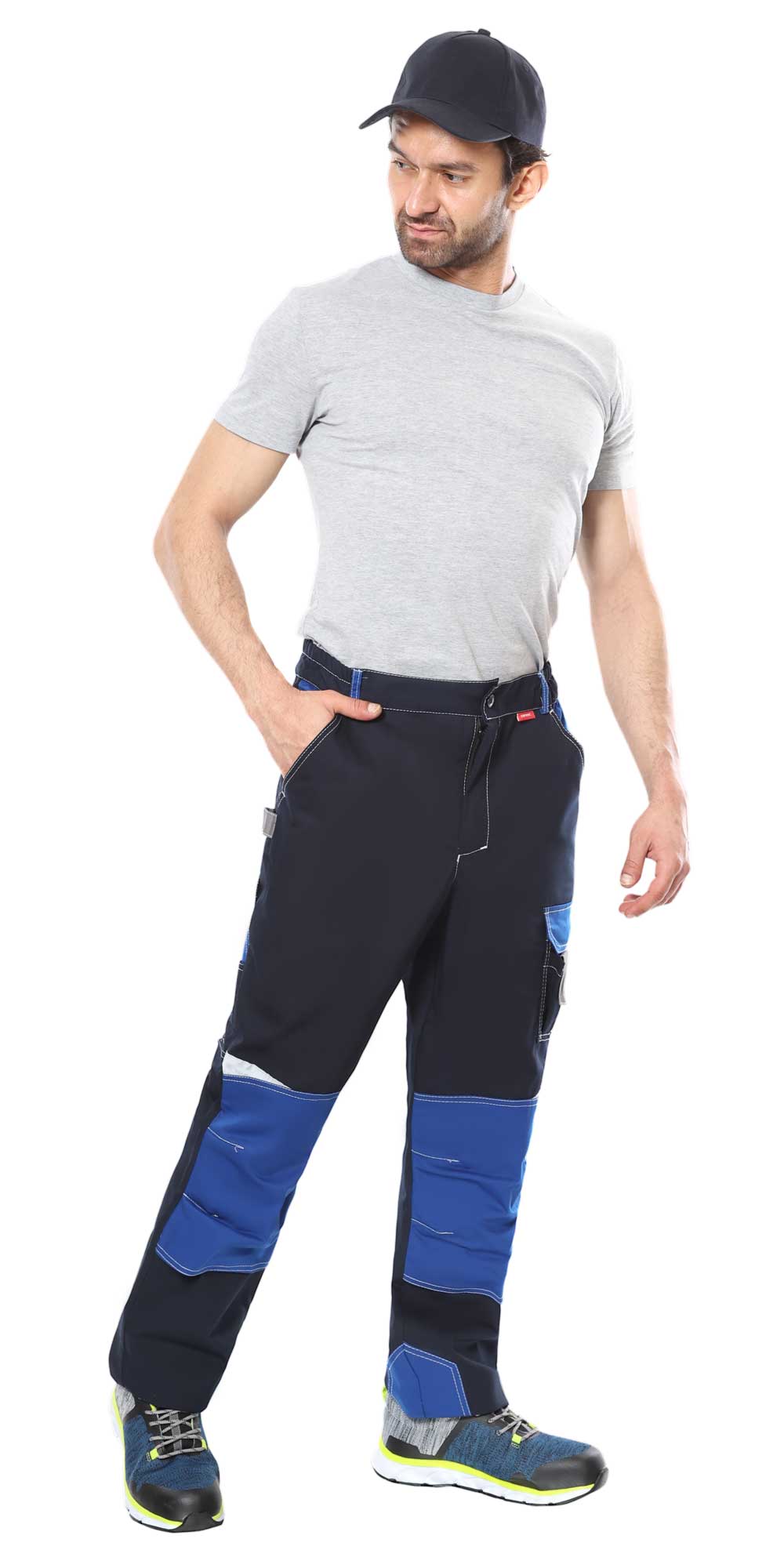 Брюки прямые, с застёжкой спереди на молнию, с отрезным поясом, застёгивающимся на пуговицу, с наколенниками, с боковыми внутренними карманами на передних половинках, на правой задней половинке с верхним накладным карманом и с двойным карманом для инструмента, на левом боковом шве с накладным двойным карманом с клапаном на липучке. В брюках предусмотрены светоотражающие элементы для обеспечения безопасности в условиях пониженной видимости.
