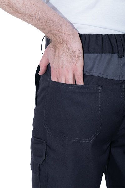 • 6 карманов: 2 боковых с наклонным входом, 2 накладных на задней половинке, 1 карман для инструментов на правом боковом шве, 1 накладной с клапаном на ленте контакт, с малым карманом на левом боковом шве