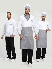 Мужской костюм предназначен для работника кухни, непосредственно занятого приготовлением пищи. Комплект изготовлен из хлопчатобумажного полотна, обеспечивающего комфорт во время работы. Куртка имеет свободный силуэт, не стесняющий движений. Центральная застёжка выполнена на пуговицах. Воротник – отложной. Втачанные рукава длинные, заканчиваются манжетами. Просторные брюки имеют эластичный пояс. Костюм соответствует санитарно-гигиеническим стандартам, предъявляемым к спецодежде для работников заведений общепита.