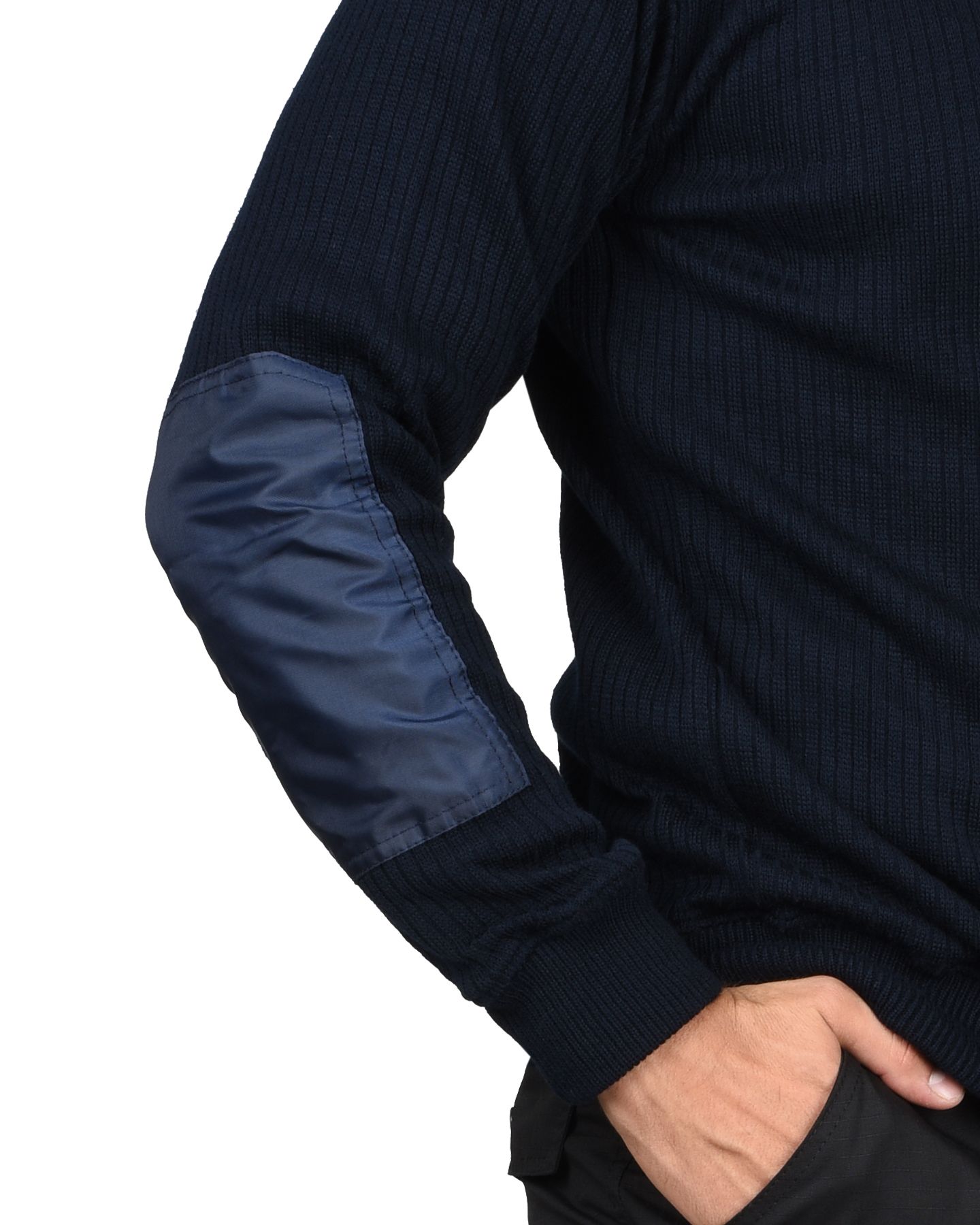 Джемпер форменный для сотрудников охранных предприятий с V-образным вырезом и с усилительными накладками в области плеч и локтей, а так же накладной карман и погоны из курточной ткани.