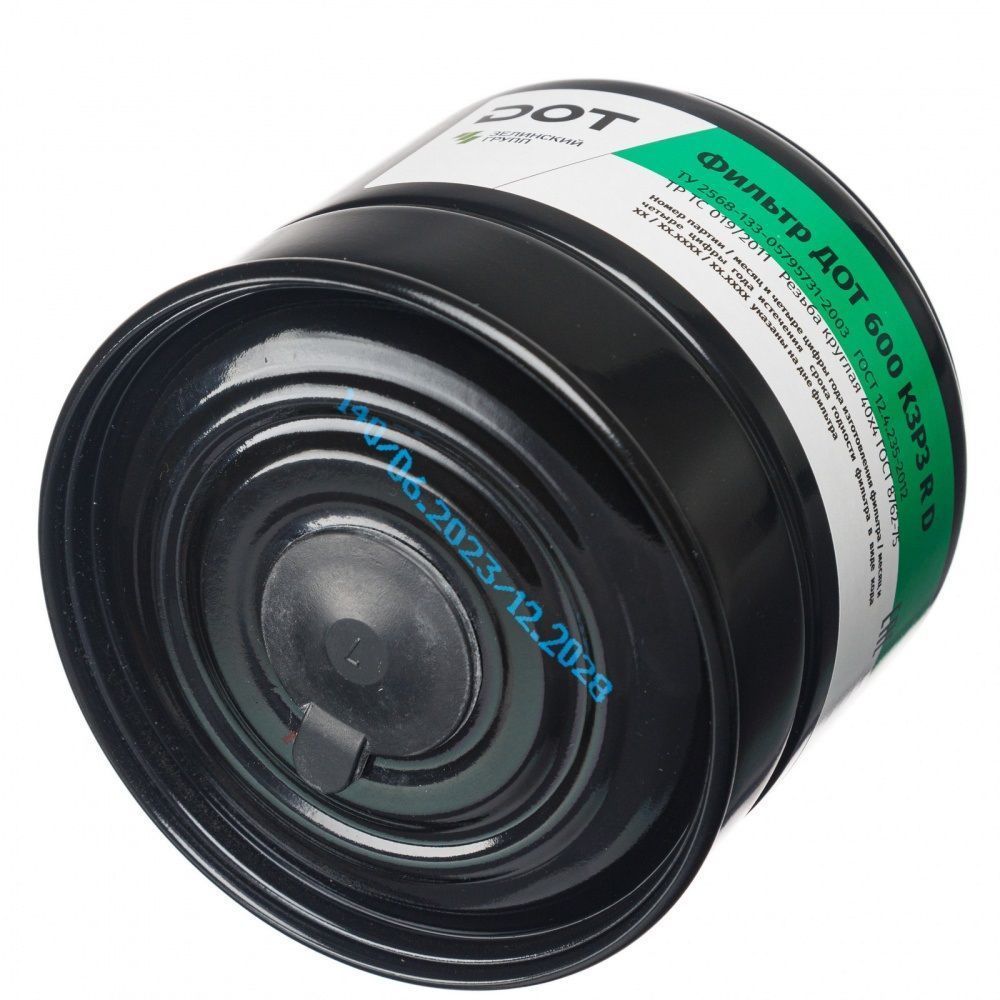 Фильтр комбинированный ДОТ 600 К3Р3 R D в металлическом корпусе предназначен для защиты от аммиака и его органических производных, аэрозолей (пыль, дым, туман), в комплекте промышленного фильтрующего противогаза ДОТ.