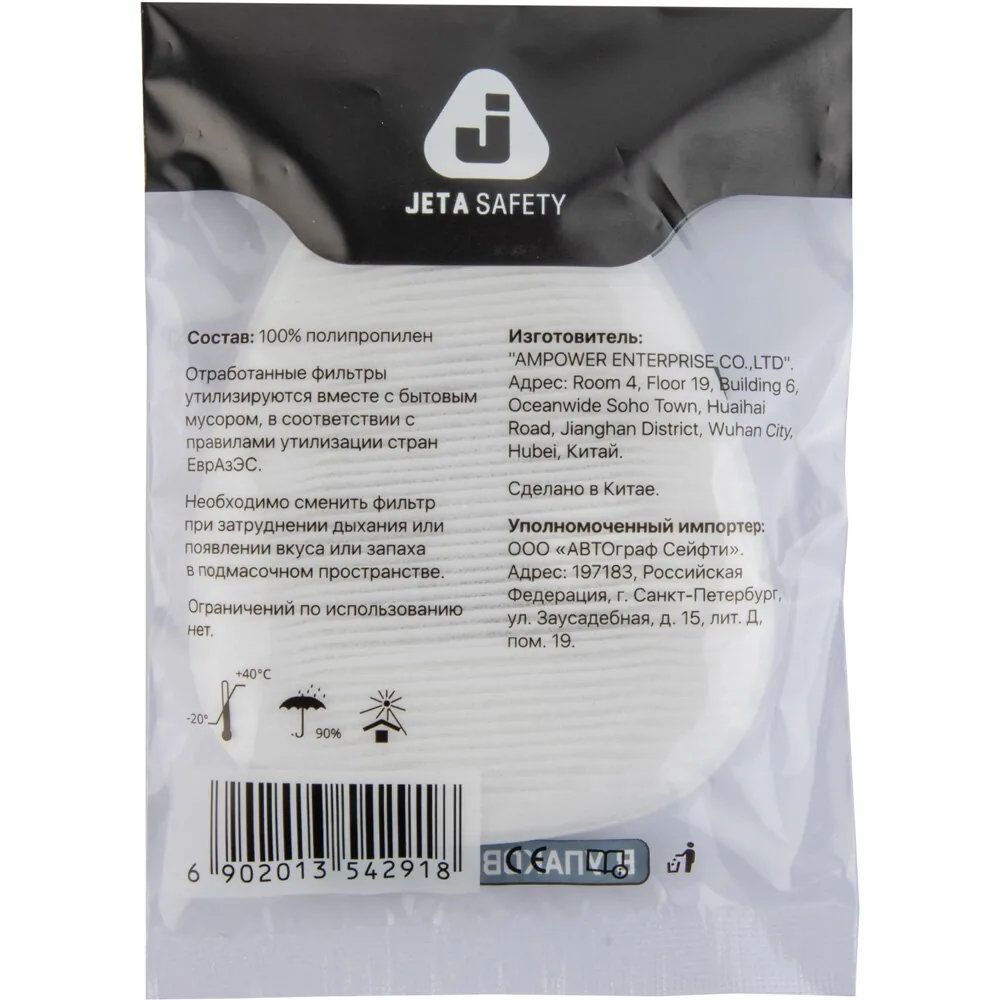 Предфильтр от пыли и аэрозолей Jeta Safety 6021 не подходит для применения в качестве самостоятельного защитного средства в сильно запыленных и загрязненных помещениях. Он рассчитан лишь на четырехкратное превышение предела допустимой концентрации, борьбу с крупными взвесями. Бесполезен при работе с аммиаком, кислыми газами.