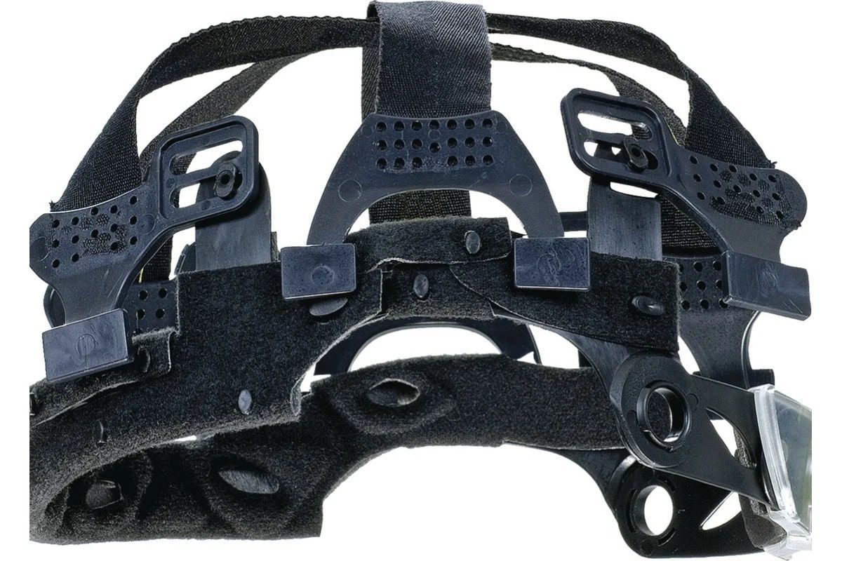 Защитная каска из полипропилена (PP) высокой плотности, устойчивая к УФ-лучам. Внутренняя оснастка из полиамида: 3 текстильных ремня с 8 точками крепления. Потовпитывающая вставка на лобовой части оголовья. Карманы для крепления очков, наушников, щитков. Регулируется по обхвату головы от 53 до 63 см при помощи системы затяжения ROTOR®.  2 возможных позиции размещения на голове: высокая и низкая. Стойкость к брызгам расплавленного металла. Защита против случайного кратковременного контакта с электрическим проводником под напряжением 440 В переменного тока.