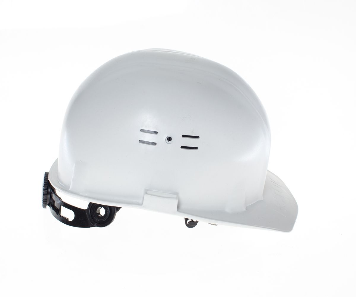 Защитная каска с пластиковым оголовьем и ленточным регулятором размера. Имеет простую конструкцию, оснащена пластиковым амортизатором, имеющим 6 точек крепления. Предусмотрено использование зимнего подшлемника, защитного лицевого щитка и наушников. Комплектуется подбородочным ремнем и лентой от пота.