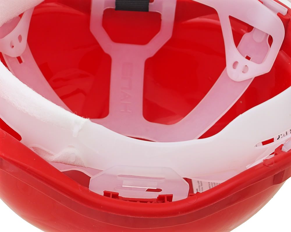 · Внутренняя оснастка состоит из полиэтиленовой несущей ленты с текстильным оголовьем, оснащена потопоглащающей лентой и подбородочным ремнем.