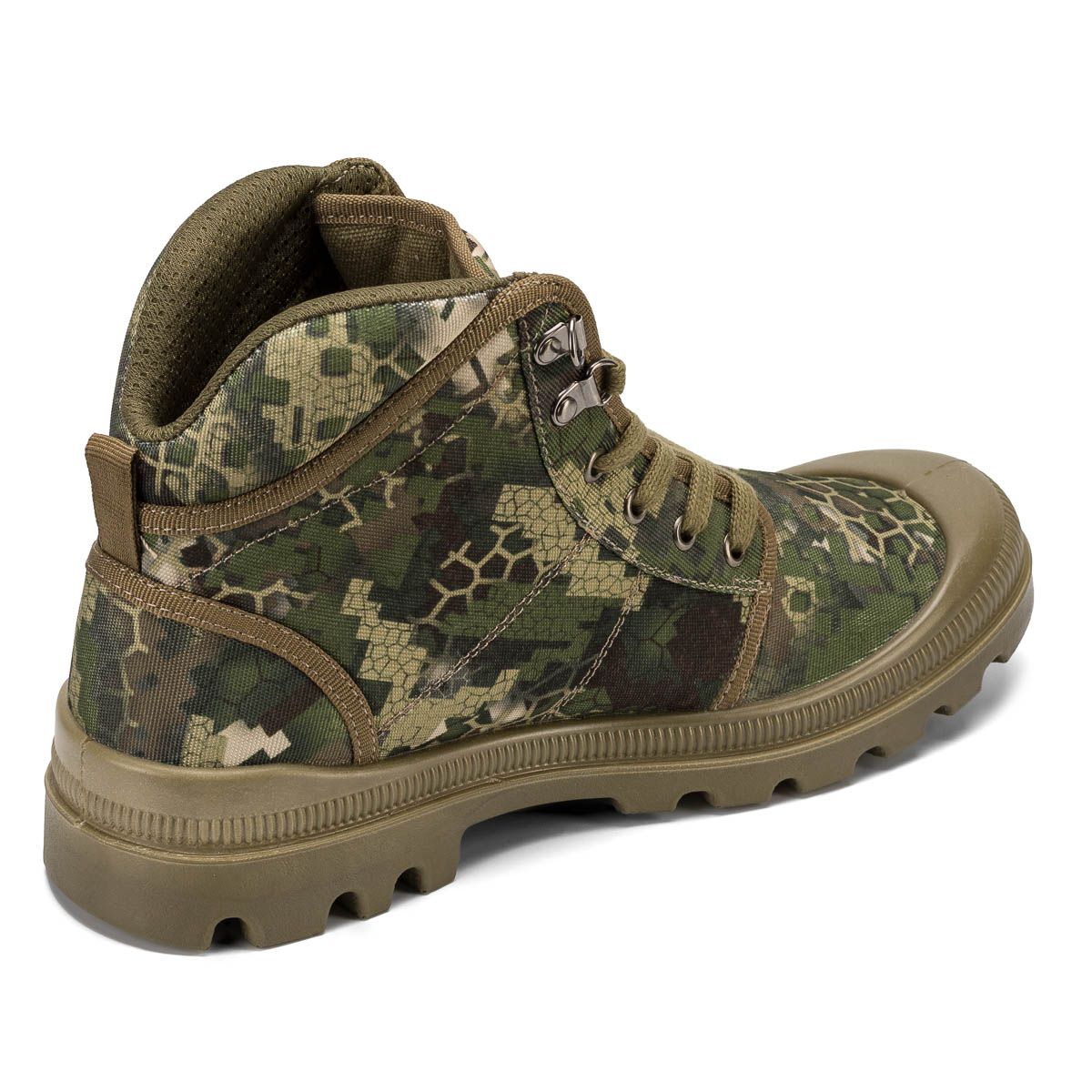 Специальная разработка дизайна подошвы и стельки с высокой упругостью выполнены с помощью технологии High Poly modeling, ее особенность – боковая поддержка и фиксация стопы,  что является важным аспектом в условиях неровных поверхностей.