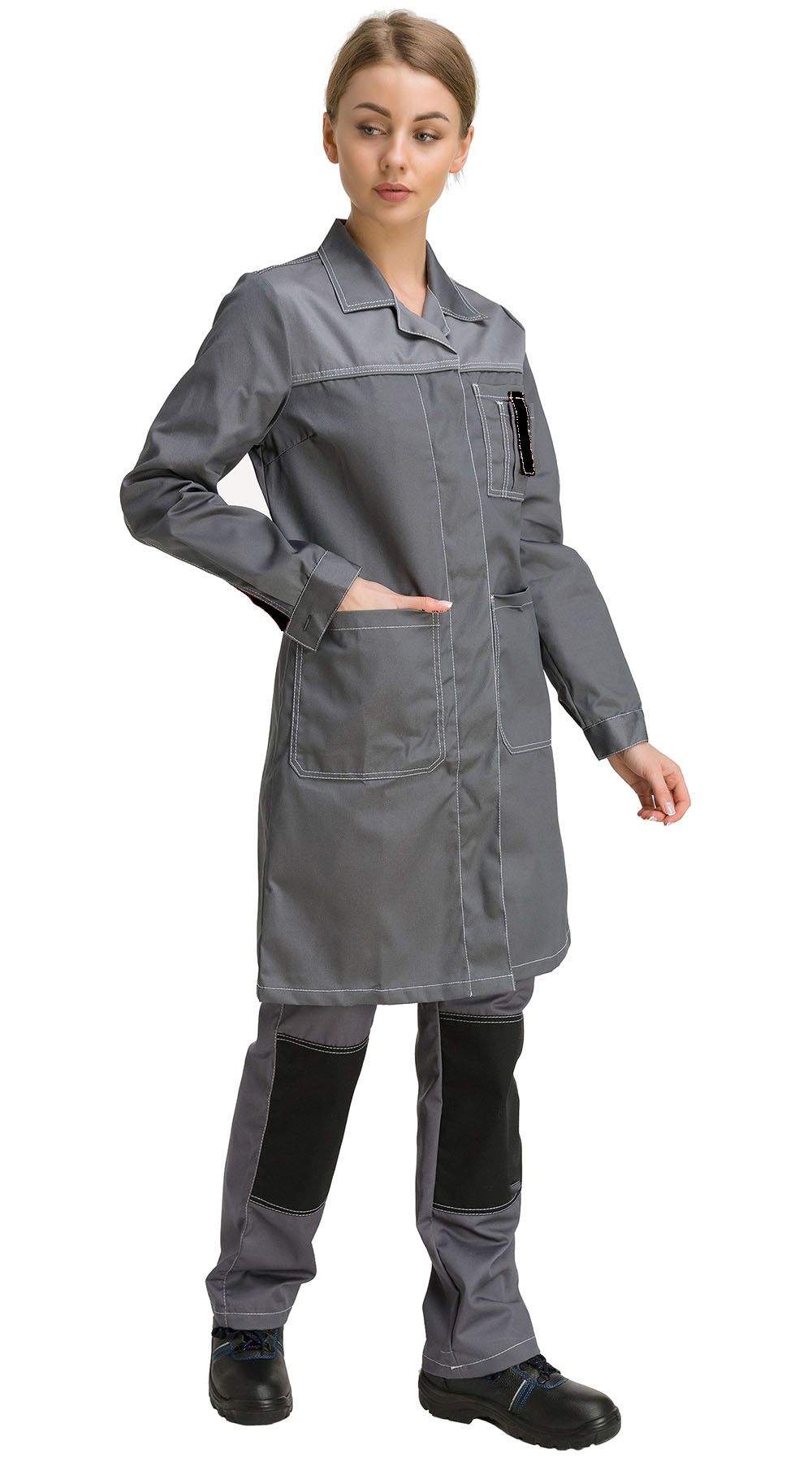 Халат рабочий женский летний RONTA HL101, т.серый/св.серый/черный (ЧЗ) (Хал068) : купить в Москве, цены в каталоге интернет-магазина «Аспект»