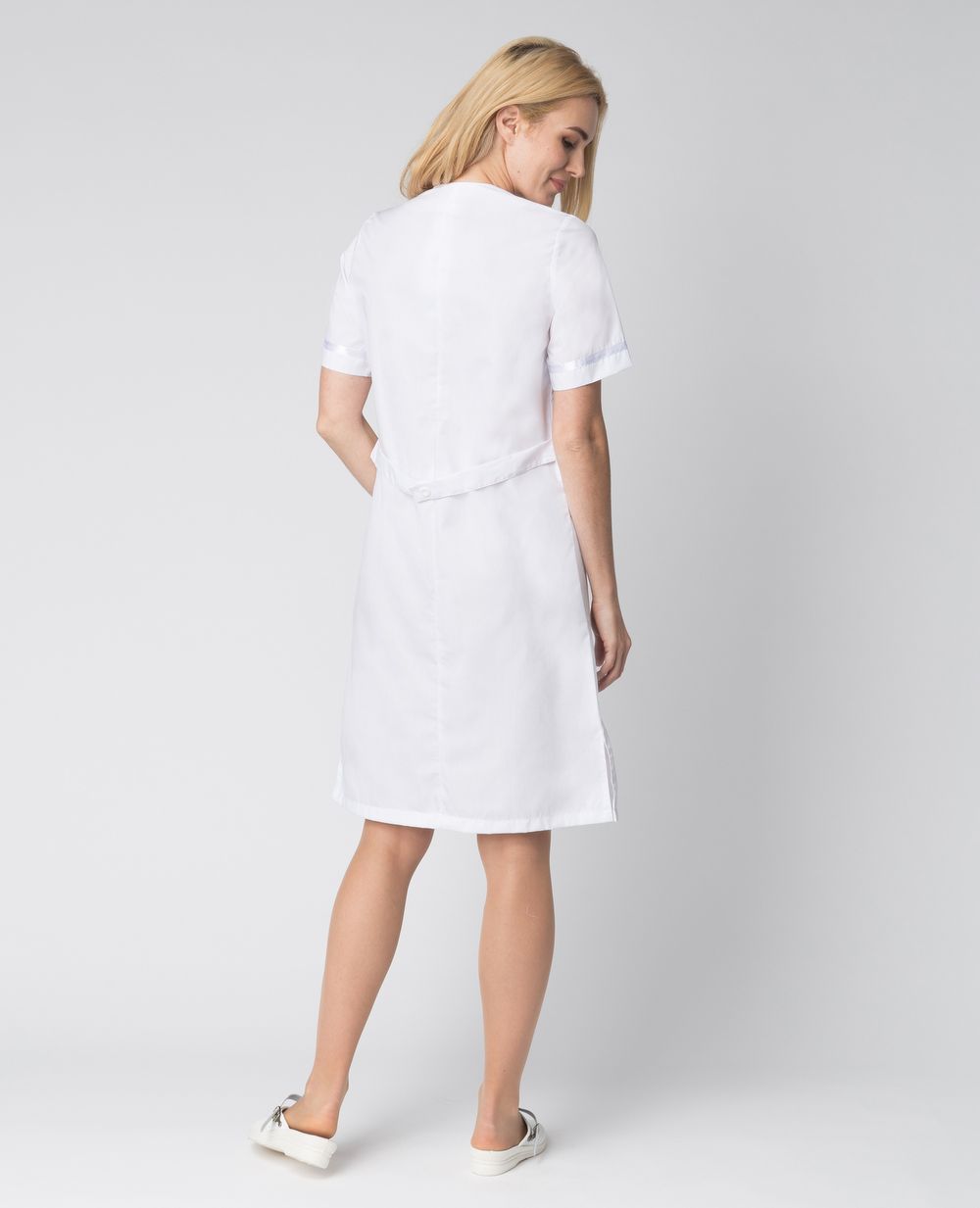 - контрастным белым кантом отделаны кокетка, карманы и манжеты