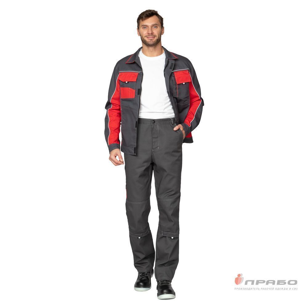 Костюм мужской летний "Бренд 1 2020" (куртка+брюки) т.серый/красный (ЧЗ) (Кос9408-3) : купить в Москве, цены в каталоге интернет-магазина «Аспект»