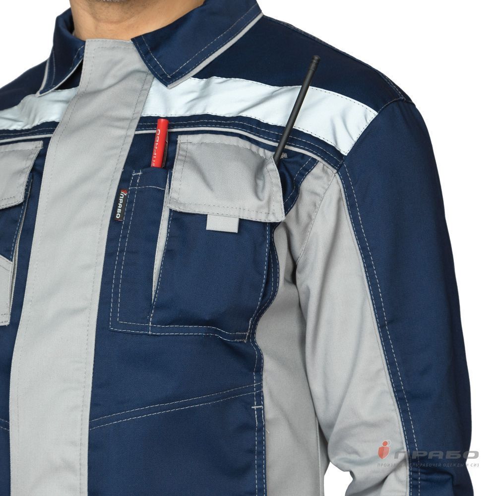 В нашем интернет-магазине "Аспект" представлен костюм, который сочетает в себе стиль, надежность и высокую функциональность. Этот комплект состоит из элегантной куртки и брюк, выполненных в темно-синем цвете с элегантными аккуратными акцентами василькового оттенка.