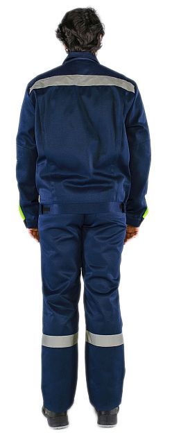 - по кокеткам, полочкам, спинке, рукавам и брючинам расположены световозвращающие полосы, что позволяет использовать костюм в условиях плохой видимости