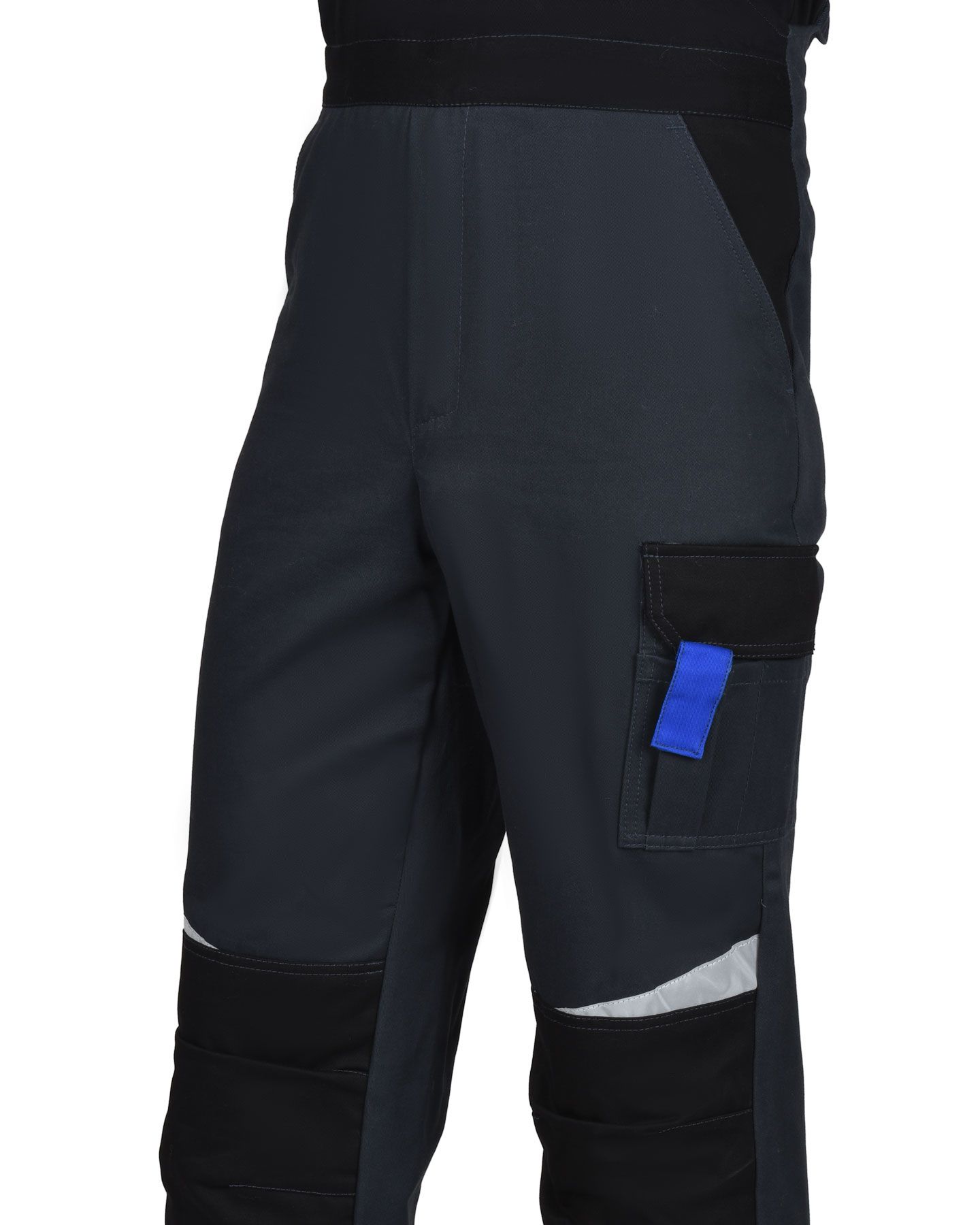 Комбинация цветов в костюме позволяет достичь удобства в эксплуатации: темный цвет – в сильно загрязняемых местах, яркий цвет - акцент дополнительной видимости на отдаленном расстоянии. Костюм с фигурной лентой СОП для обозначения сигнальной видимости.