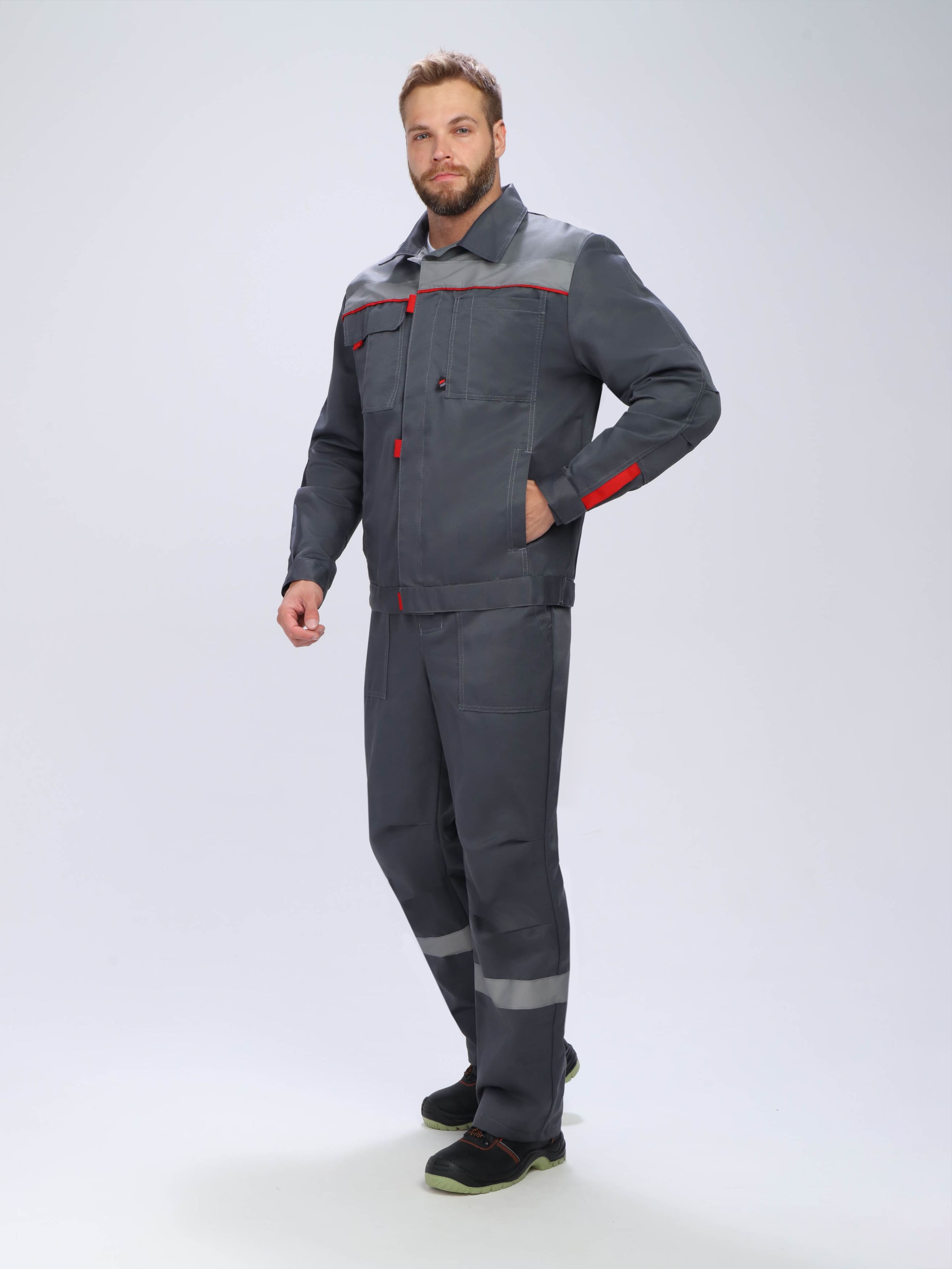 Костюм мужской "Виват" (куртка+п/комб.), серый/красн./чёрный