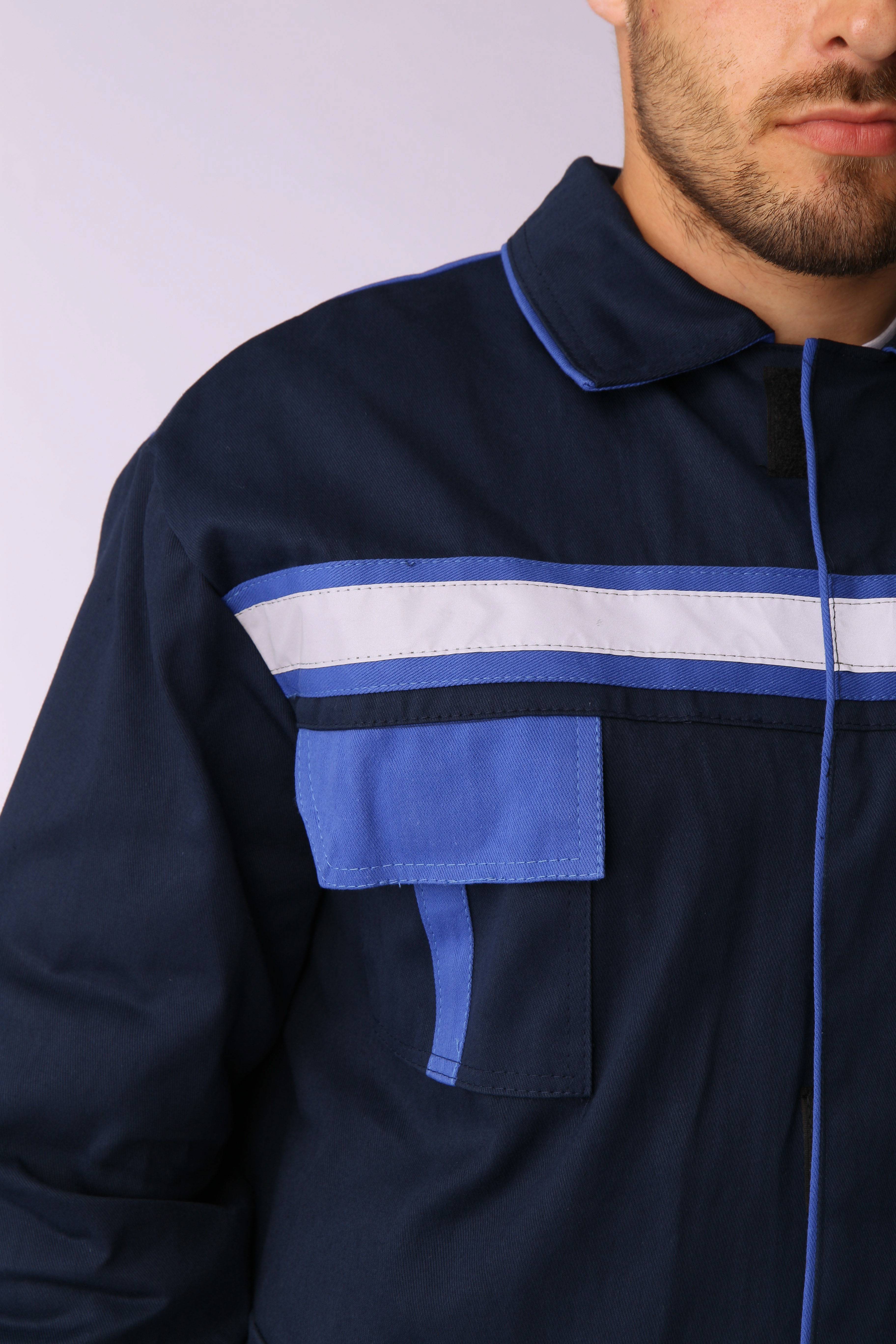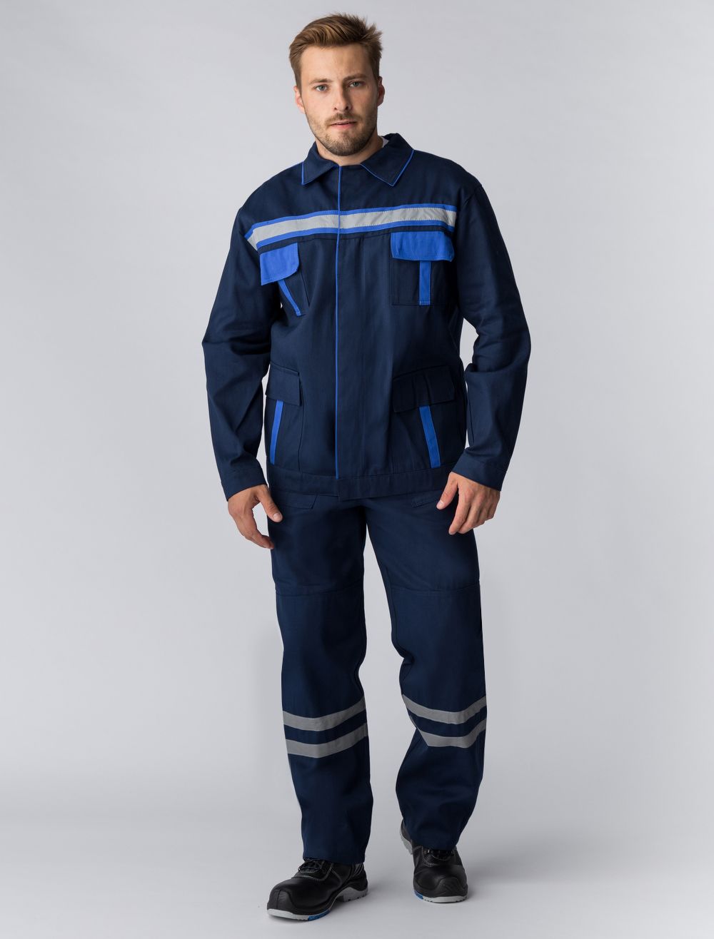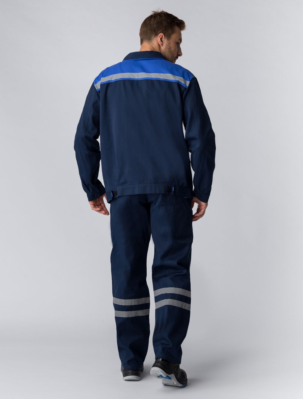 В нашем интернет-магазине "Аспект" представлен костюм, который сочетает в себе стиль, надежность и высокую функциональность. Этот комплект состоит из элегантной куртки и брюк, выполненных в темно-синем цвете с элегантными аккуратными акцентами василькового оттенка.