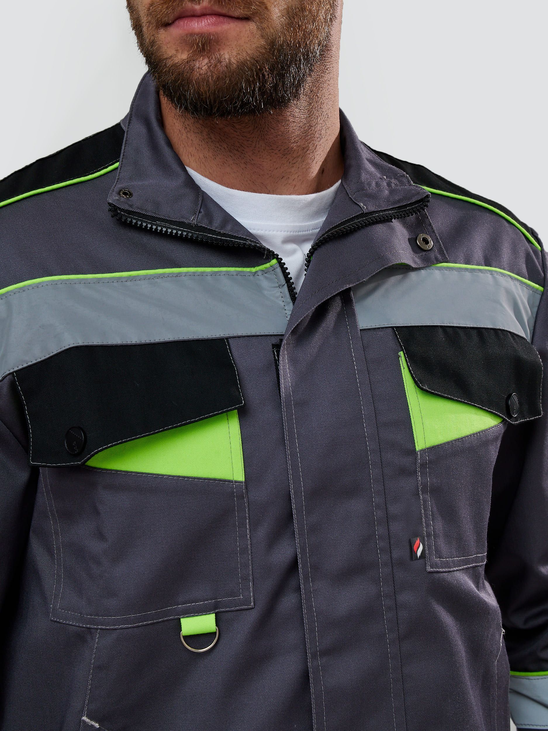 Костюм мужской летний "Ховард-1 IMP" (куртка+брюки) т.серый/черный/лимонный (ЧЗ)