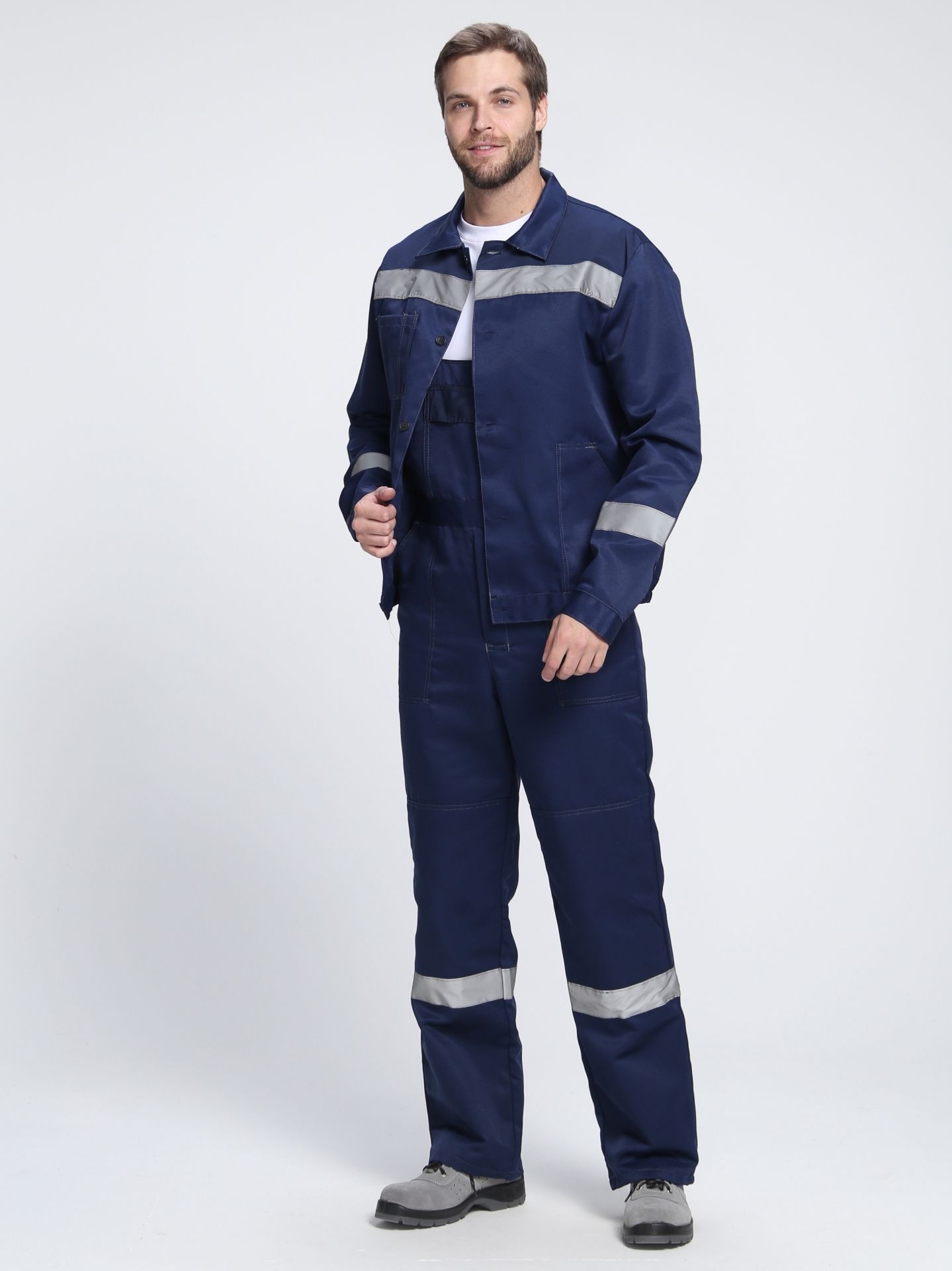 Усиленные Накладки: Костюм оснащён усиленными накладками на коленях и локтях, что предотвращает быстрый износ и обеспечивает дополнительную защиту при работе в условиях повышенной физической нагрузки.