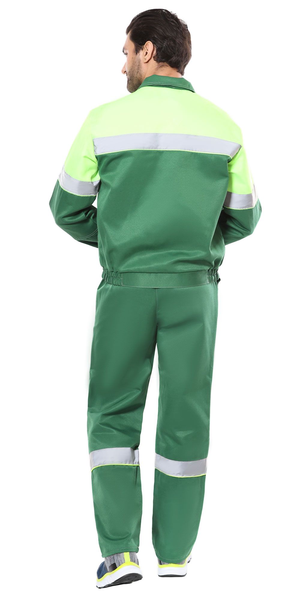 Костюм оснащен светоотражающей лентой СОП (светоотражающий элемент) для обеспечения видимости в условиях недостаточной освещенности. Контрастный кант дополнительно подчеркивает ленту СОП.