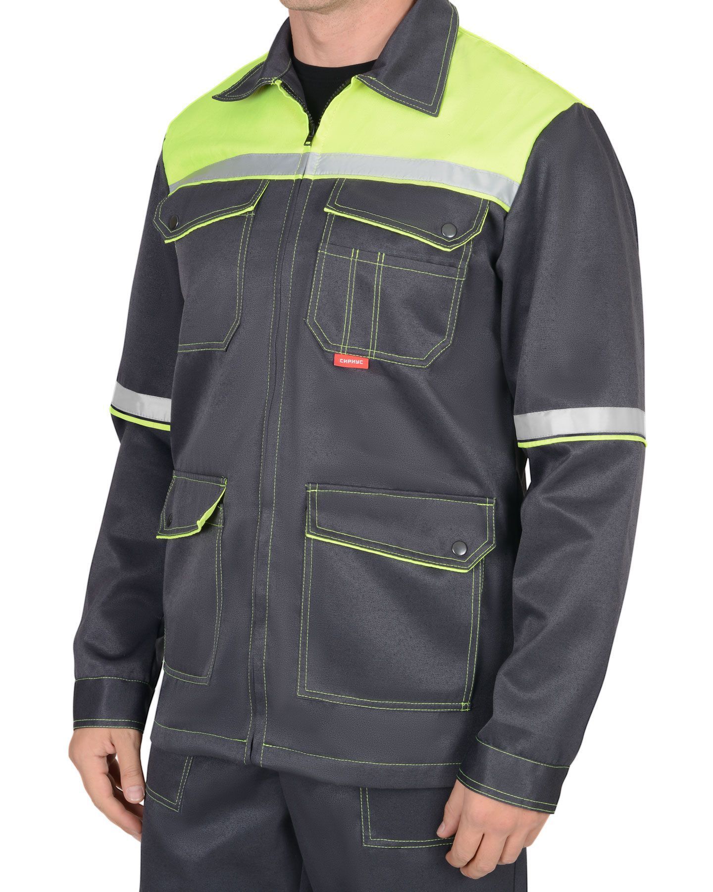 Костюм мужской летний "Механизатор-2" (куртка+брюки) темно-серый с неоновым и СОП (130509) : купить в Москве, цены в каталоге интернет-магазина «Аспект»