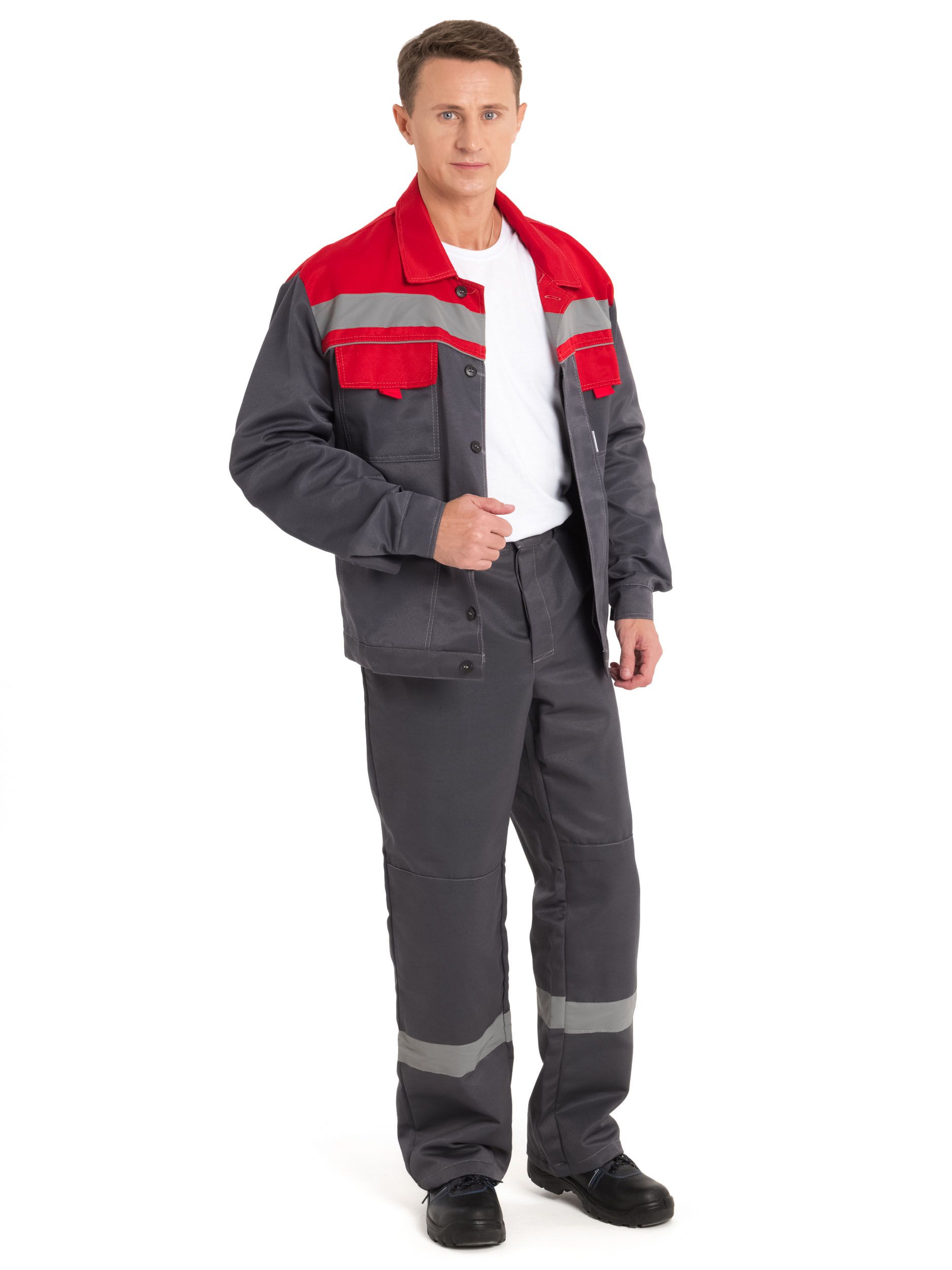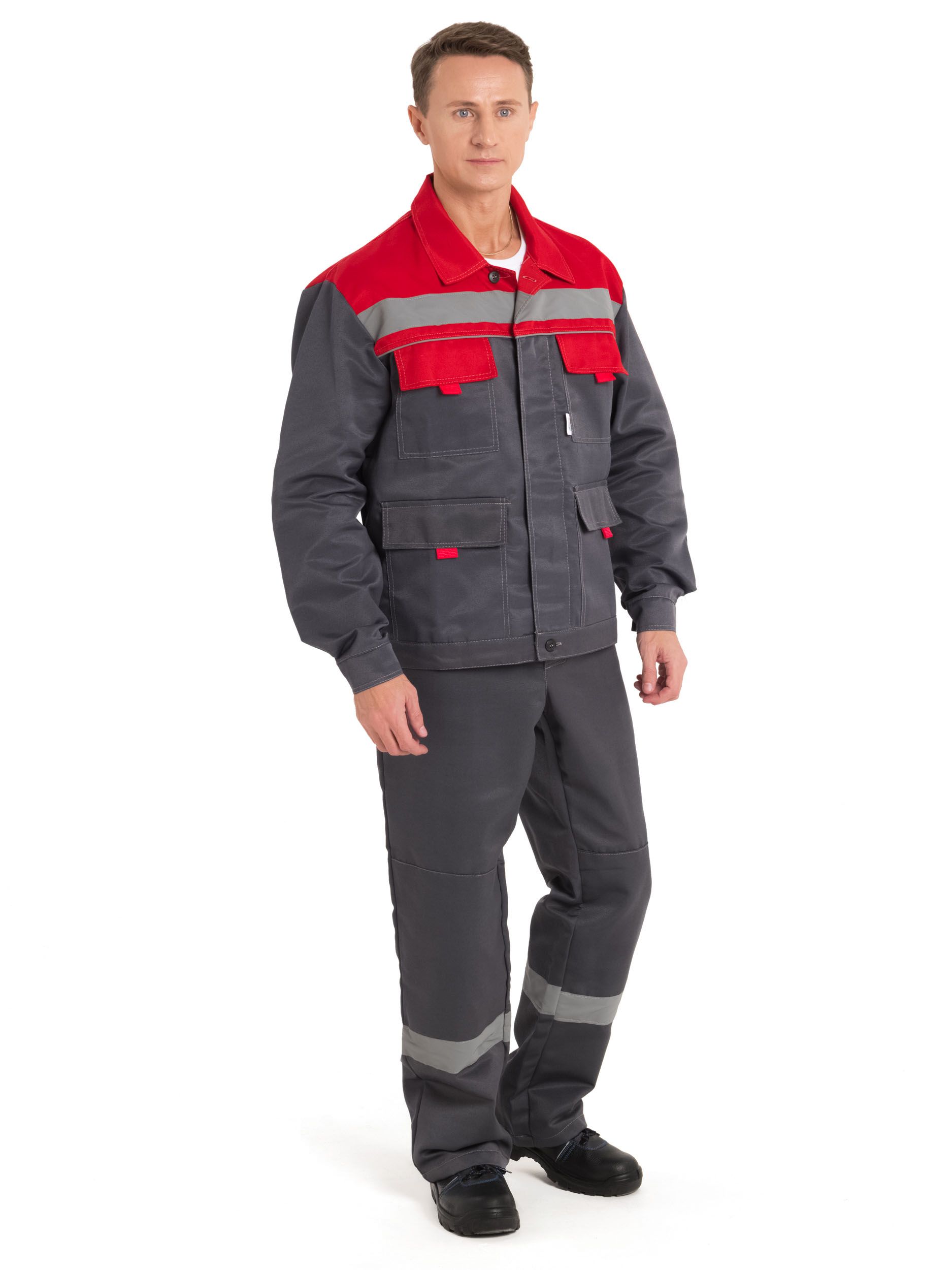 Костюм мужской летний "Нова-1" (куртка+брюки) сер/красн. (ЧЗ)