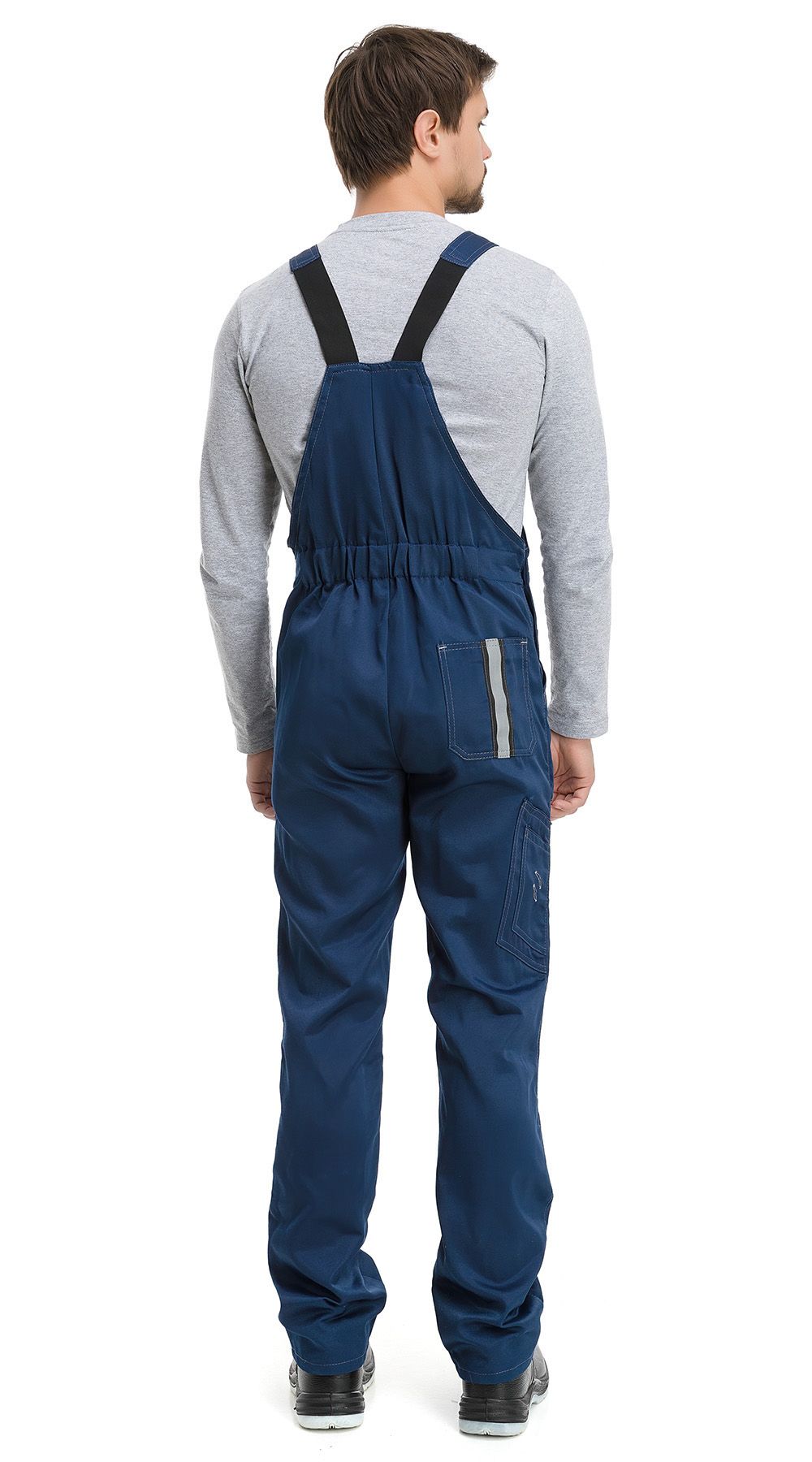 Полукомбинезон, входящий в комплект, также продуман до мелочей. Он укомплектован поясом и имеет передние боковые карманы-полупортфели, задний накладной карман и специальный карман для инструментов. Для повышения защиты на уровне колена предусмотрены усилительные накладки с карманами для защитных прокладок, а внешние срезы накладок гармонично переходят в боковые и шаговые швы, что повышает надежность конструкции.