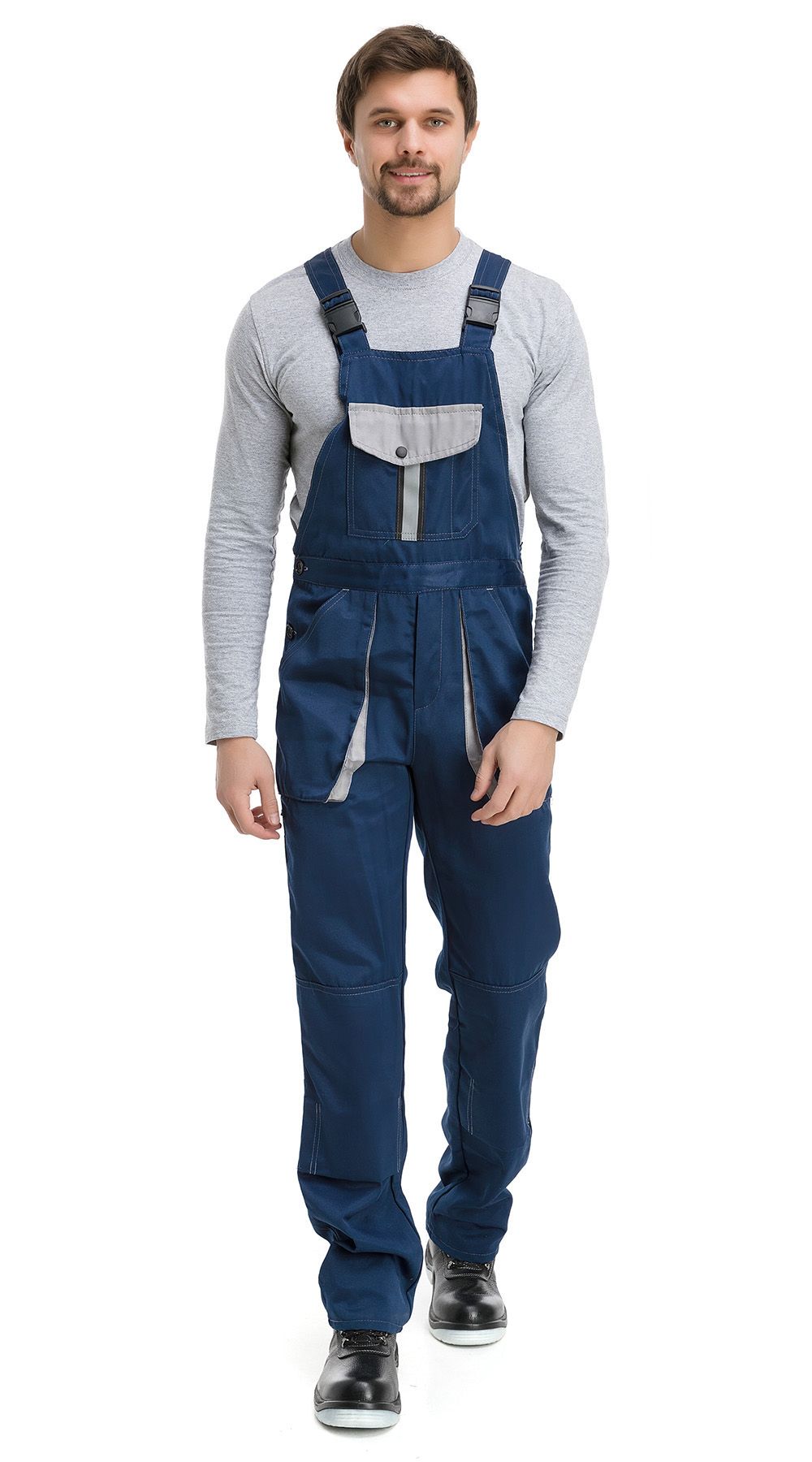 Полукомбинезон, фиксирующийся на регулируемых бретелях с эластичной тесьмой и фастексами, идеально адаптируется к активной работе. Особенности конструкции, такие как притачной пояс, гульфик на молнии и кнопочная застежка на левом боковом шве, обеспечивают превосходный комфорт при движении. Грудная часть полукомбинезона имеет накладной карман с клапаном на пуговице для дополнительной практичности. Передние боковые карманы и усиления на коленях добавляют прочности и обеспечивают защиту от износа.