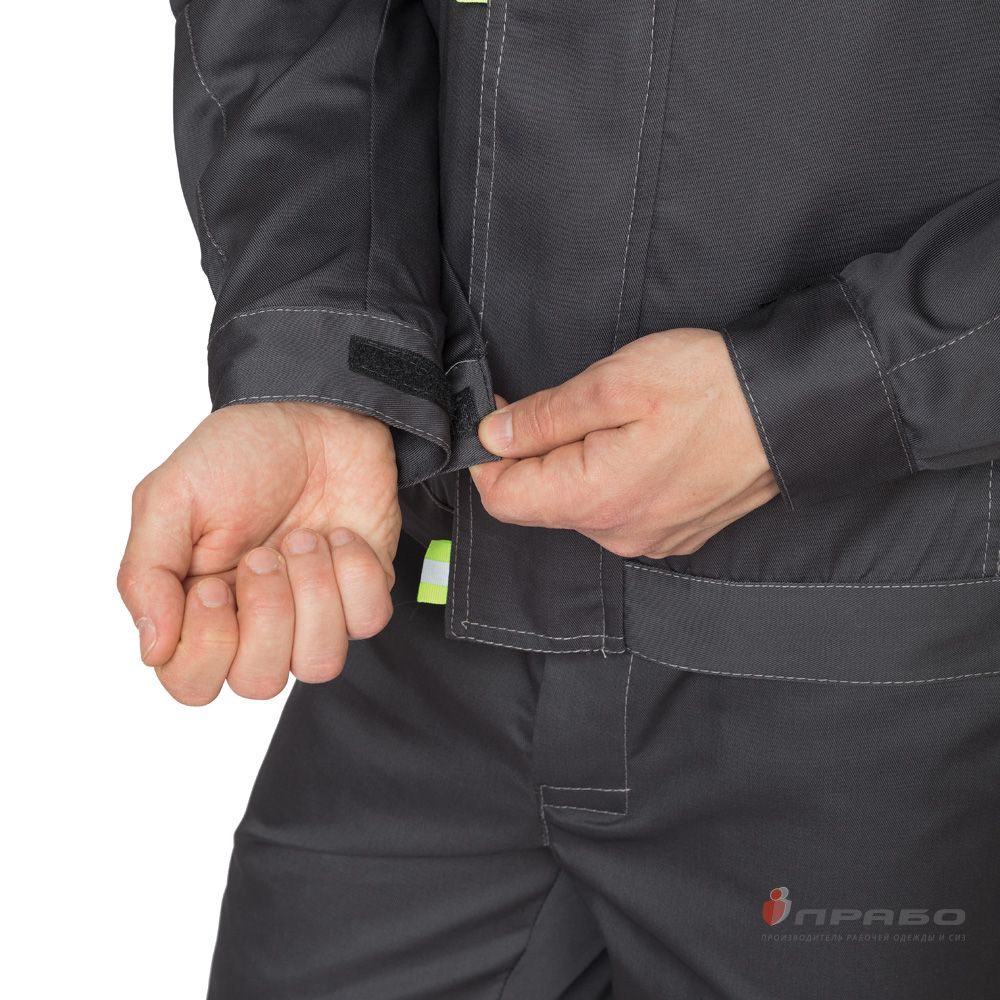 Одним из наиболее важных атрибутов этого костюма являются светоотражающие полосы шириной 50 мм, расположенные на груди и брючинах, которые обеспечивают дополнительную видимость и безопасность в условиях низкой освещенности.