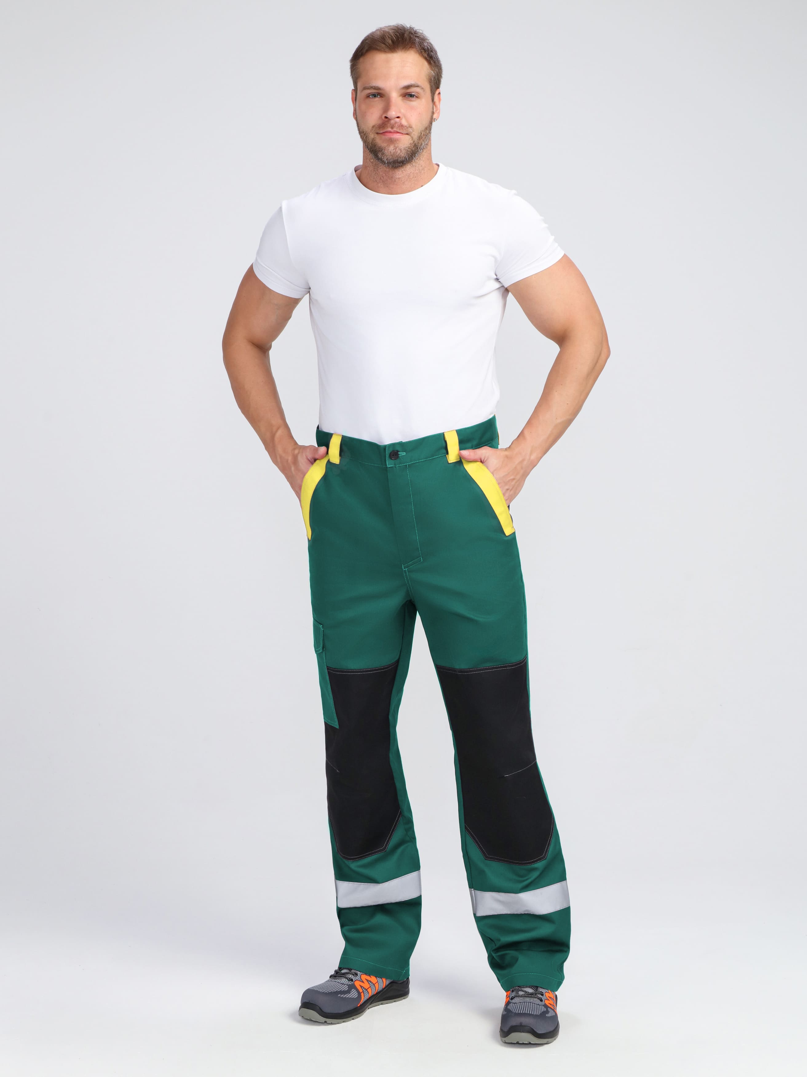 Костюм мужской летний "ProfLineBase-1" (куртка+брюки) зеленый/черный/желтый, тк.Твил,210 (ЧЗ) (87490974) : купить в Москве, цены в каталоге интернет-магазина «Аспект»