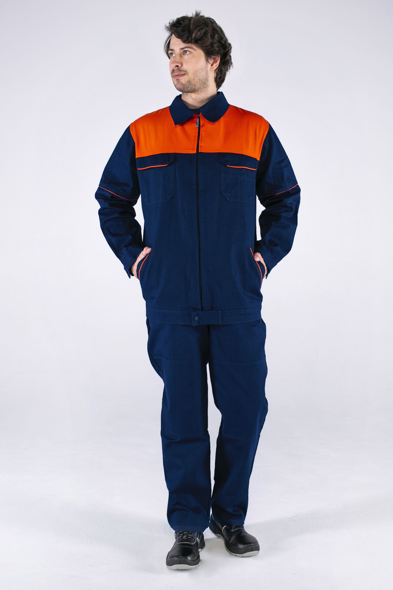 Костюм мужской летний ТК Саржа (куртка+брюки) т.синий/оранжевый (87474739) : купить в Москве, цены в каталоге интернет-магазина «Аспект»