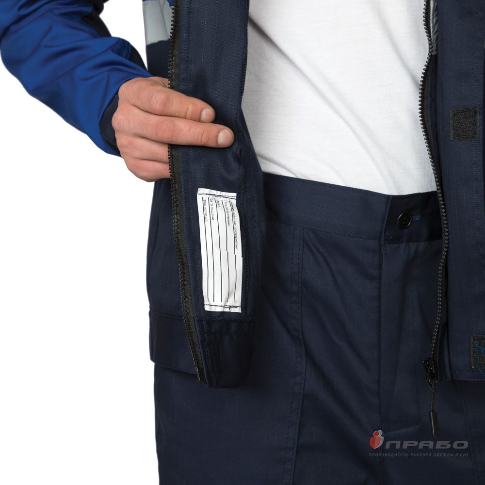 В нашем интернет-магазине "Аспект" представлен костюм, который сочетает в себе стиль, надежность и высокую функциональность. Этот комплект состоит из элегантной куртки и брюк, выполненных в темно-синем цвете с элегантными аккуратными акцентами василькового оттенка.