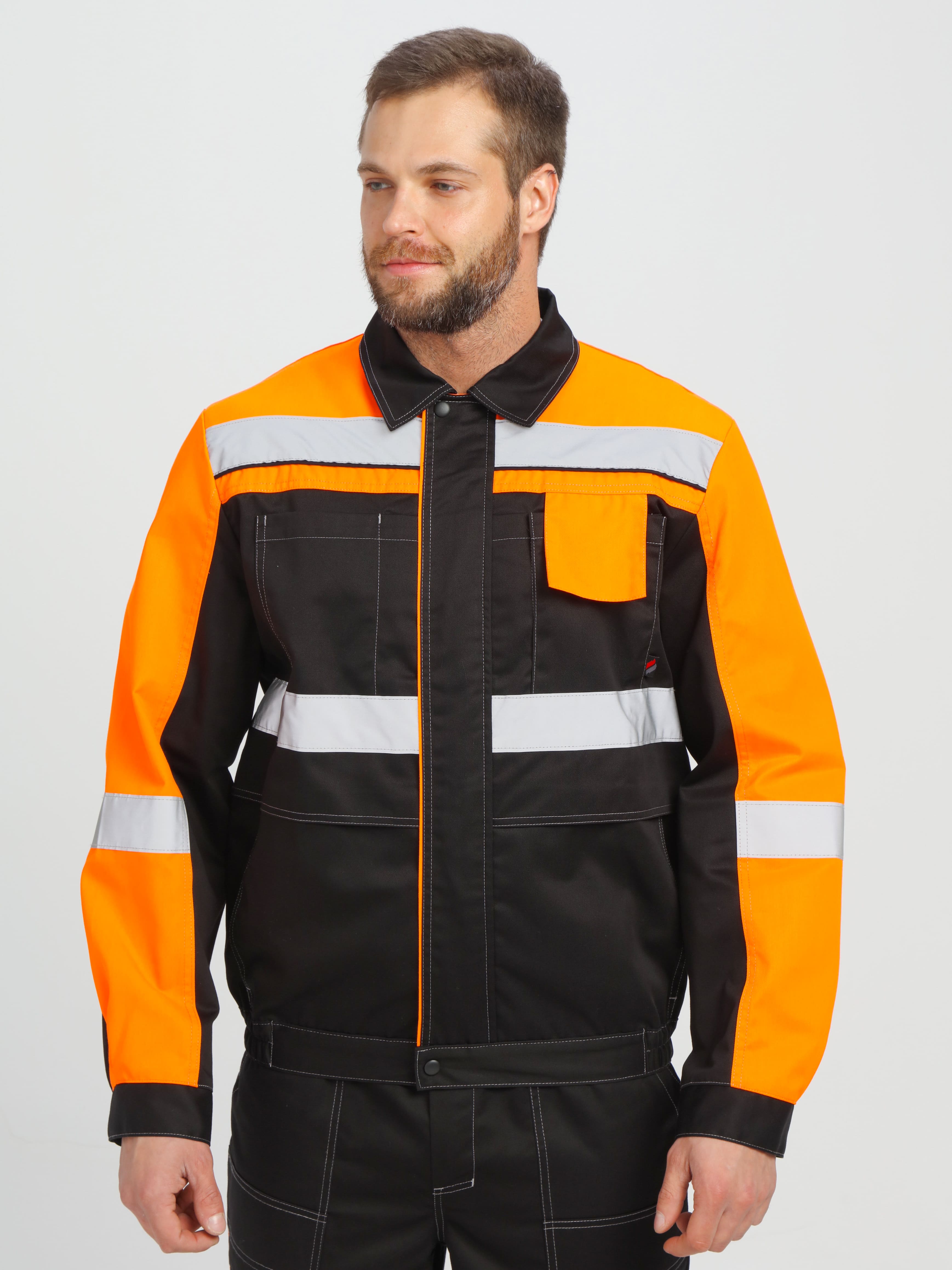 Костюм мужской летний "В-2 Премиум CH" (куртка+п/к) черный/оранжевый, тк. Смесовая,240 (87490972) : купить в Москве, цены в каталоге интернет-магазина «Аспект»