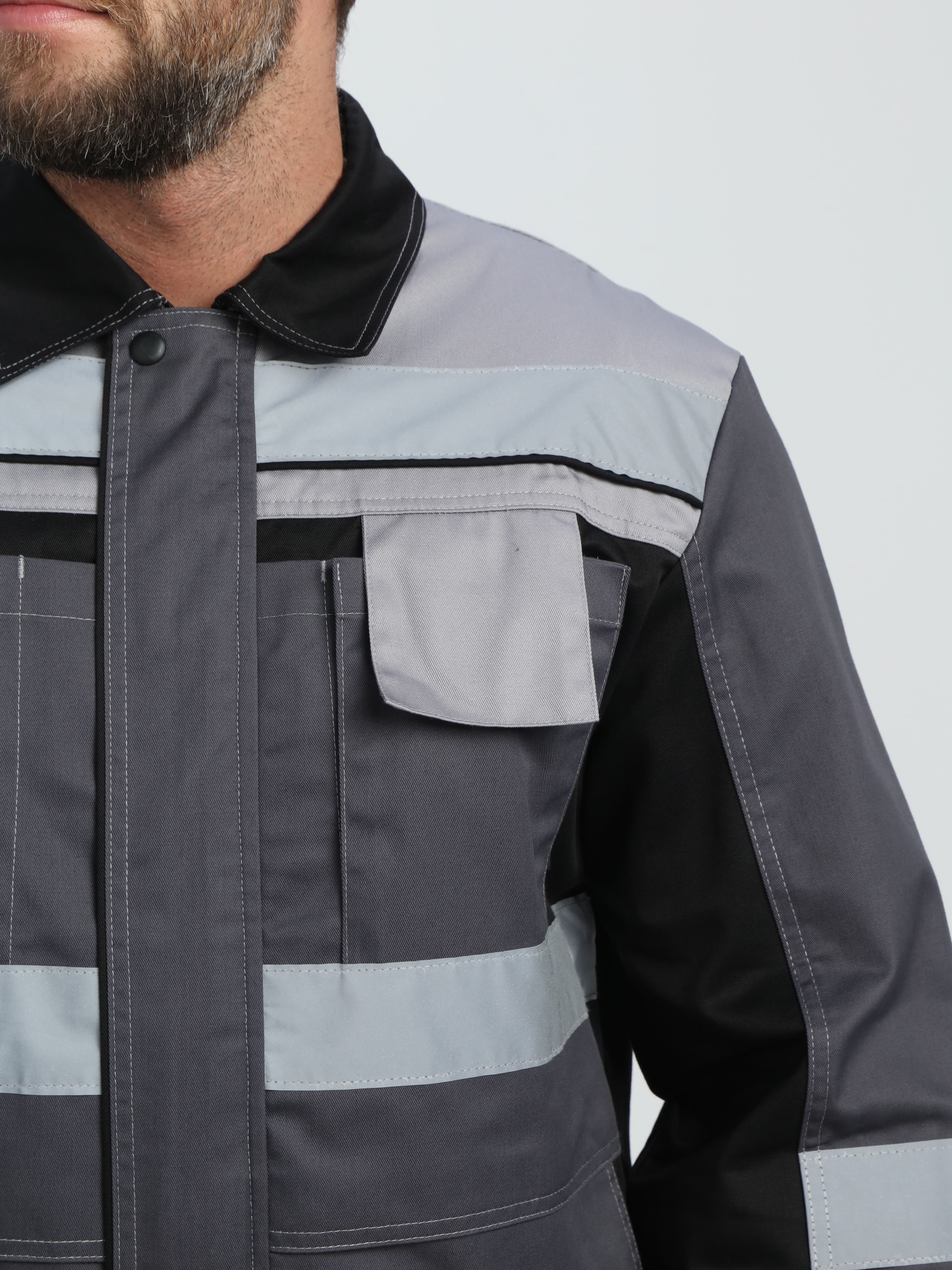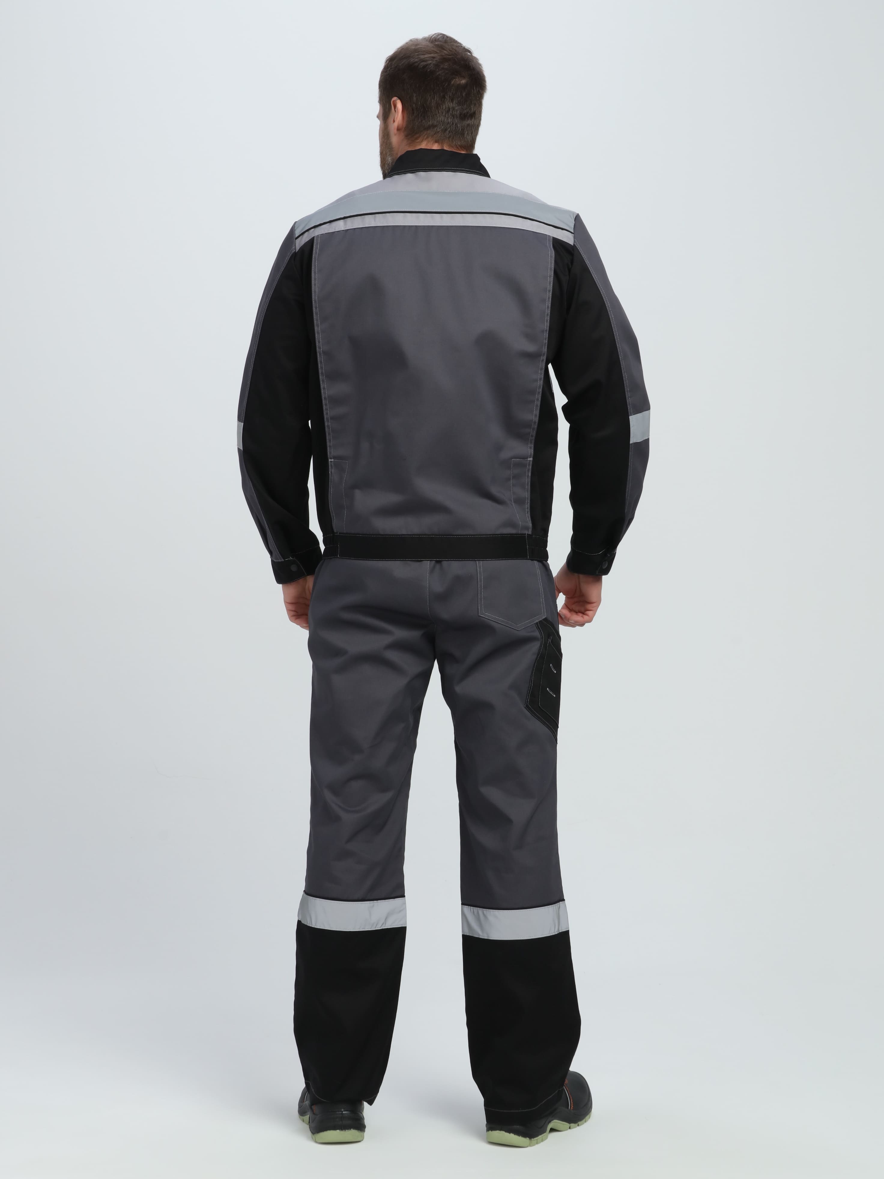 - по кокеткам, полочкам, спинке, рукавам и брючинам расположены световозвращающие полосы, что позволяет использовать костюм в условиях плохой видимости