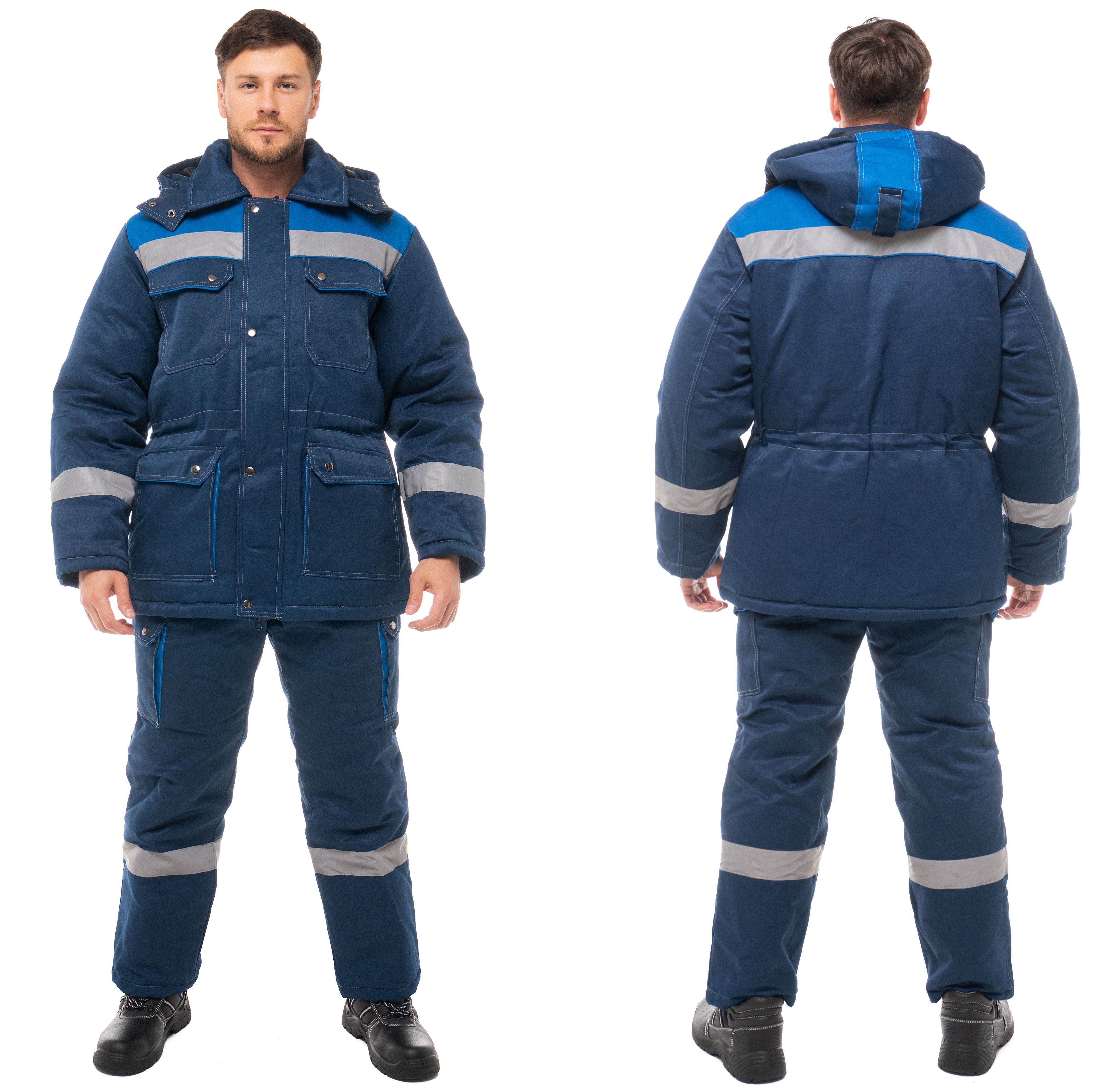 Комплект состоит из тёплой куртки и полукомбинезона. Костюм рассчитан на эксплуатацию в морозы на открытом воздухе и в неотапливаемых помещениях. Ткань устойчива к механическим воздействиям. Куртка отличается удлинённым кроем, хорошо защищает поясницу от продувания. Застёгивается на молнию с удобным большим язычком. Центральная застёжка защищена накладным ветрозащитным клапаном. В верхней части расположены косые врезные карманы. В нижней – вместительные накладные с клапаном на кнопках. Полукомбинезон оснащён эластичной вставкой в талии. Лямки регулируются пряжками по длине.