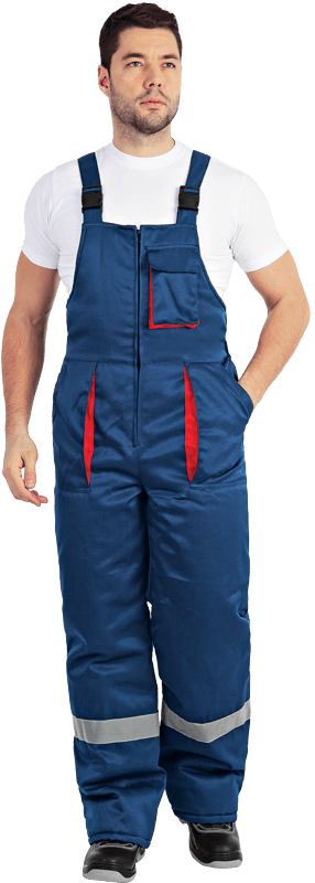 Костюм для работы в зимнее время на открытом воздухе. Ткань с водоотталкивающими свойствами. Куртка короткая с эластичной вставкой в нижней части. Манжеты тоже эластичные в форме напульсников, благодаря чему куртка не продувается через рукава и внутрь не попадает снег во время активной работы. Основная застёжка – молния. Дополнительно куртка запахивается на застёжки-липучки. Капюшон съёмный, регулируется по объёму. Воротник-стойка. На груди имеются накладные прямые карманы с клапанами, застёгивающимися на липучки. По бокам – косые открытые карманы. Полукомбинезон на эластичных бретелях с регулировкой по длине. Центральная застёжка – молния.