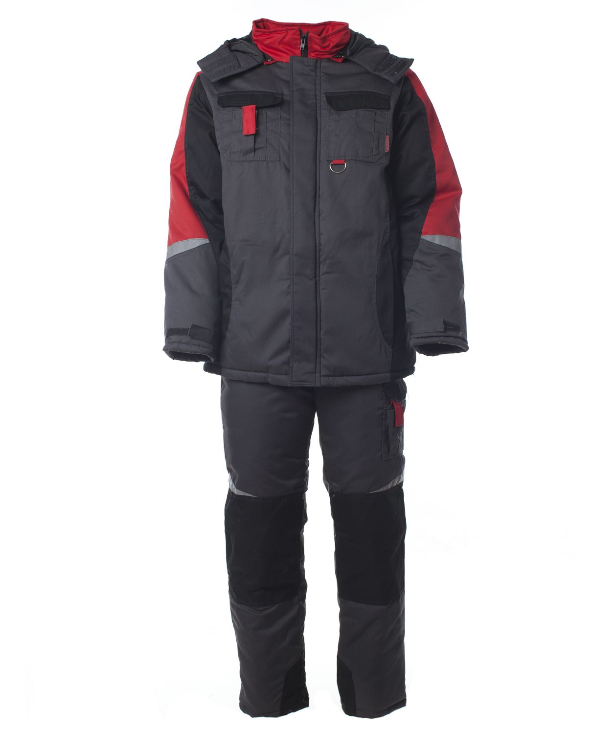 Комплект состоит из тёплой куртки и полукомбинезона. Костюм рассчитан на эксплуатацию в морозы на открытом воздухе и в неотапливаемых помещениях. Ткань устойчива к механическим воздействиям. Куртка отличается удлинённым кроем, хорошо защищает поясницу от продувания. Застёгивается на молнию с удобным большим язычком. Центральная застёжка защищена накладным ветрозащитным клапаном. В верхней части расположены косые врезные карманы. В нижней – вместительные накладные с клапаном на кнопках. Полукомбинезон оснащён эластичной вставкой в талии. Лямки регулируются пряжками по длине.