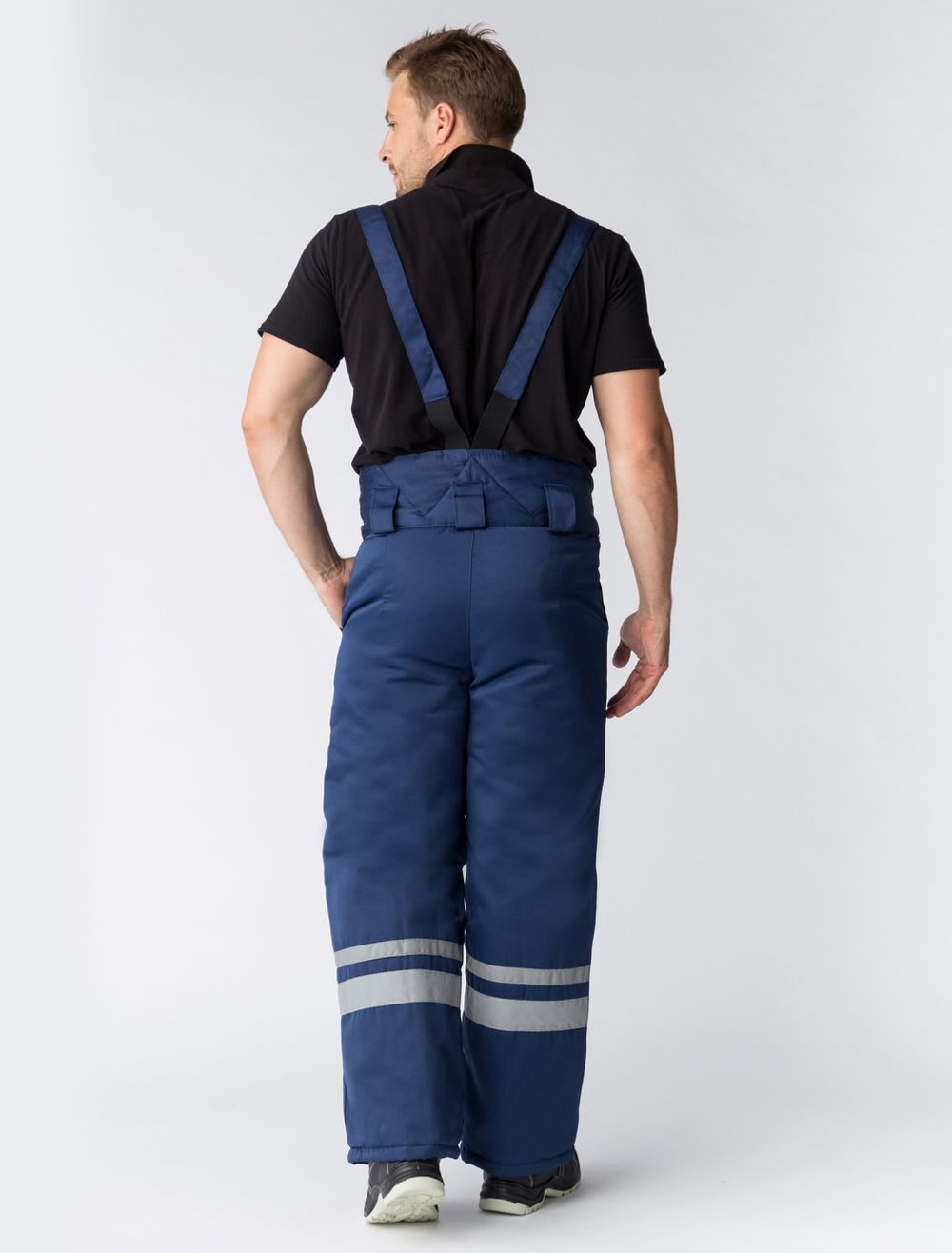 В комплект входят брюки на бретельках и удлинённая куртка с утяжками. Костюм подходит для использования на стройке, в автомастерских и на производствах в зимнее время. На груди, спине и в нижней части брюк имеются вставки из светоотражающего материала, повышающие заметность работника ночью. Воротник с отворотом, отделан мехом. При необходимости его можно поднимать для защиты шеи от ветра. Имеется капюшон с утяжками и застёжкой. На куртке предусмотрены нагрудный накладной карман под рацию и два больших кармана в нижней части. В области талии имеется утяжка. Куртка застёгивается на пуговицы.