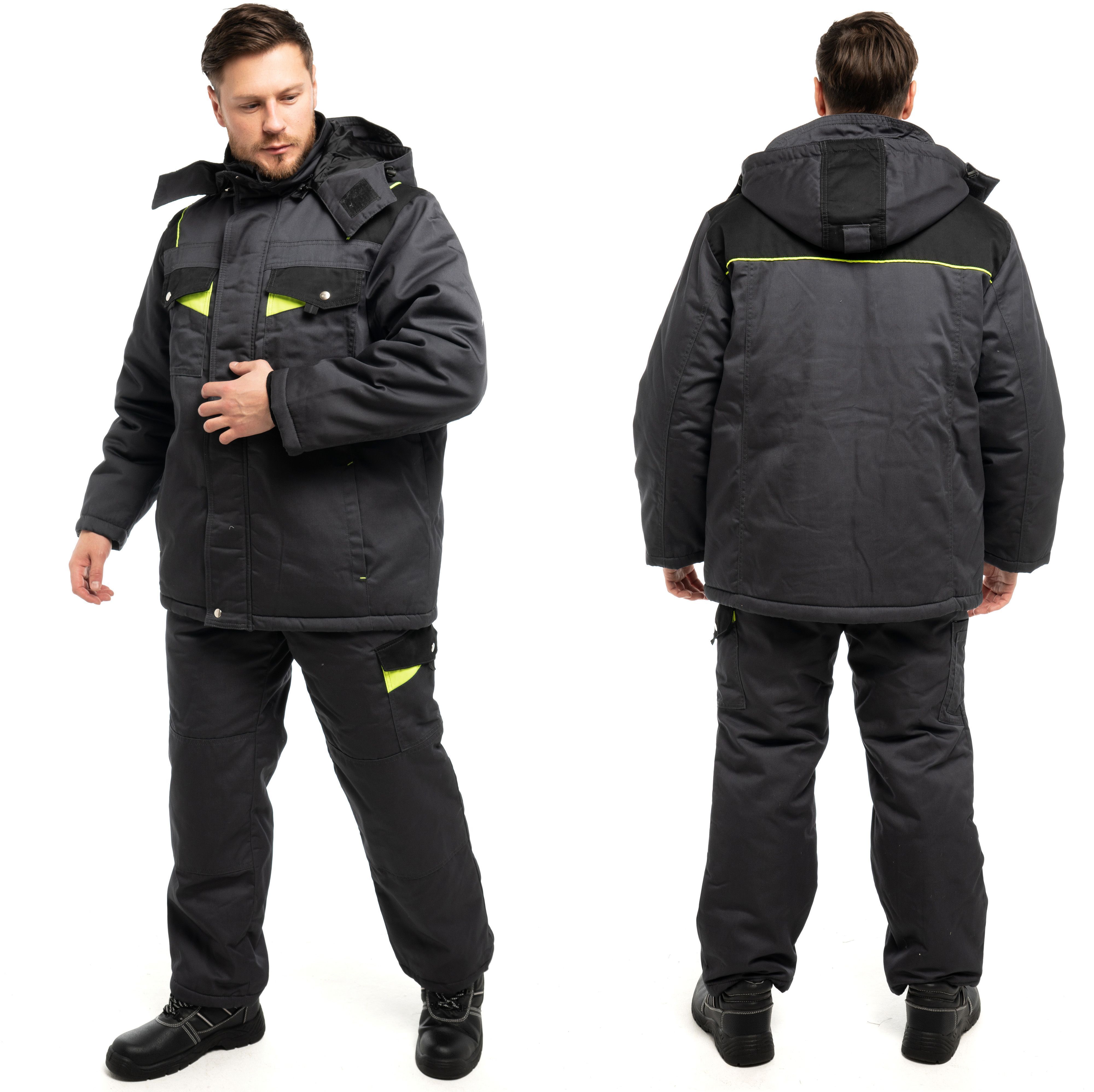 Костюм зимний "Корвет" (куртка+брюки) т.серый с черной и лимонной отделкой