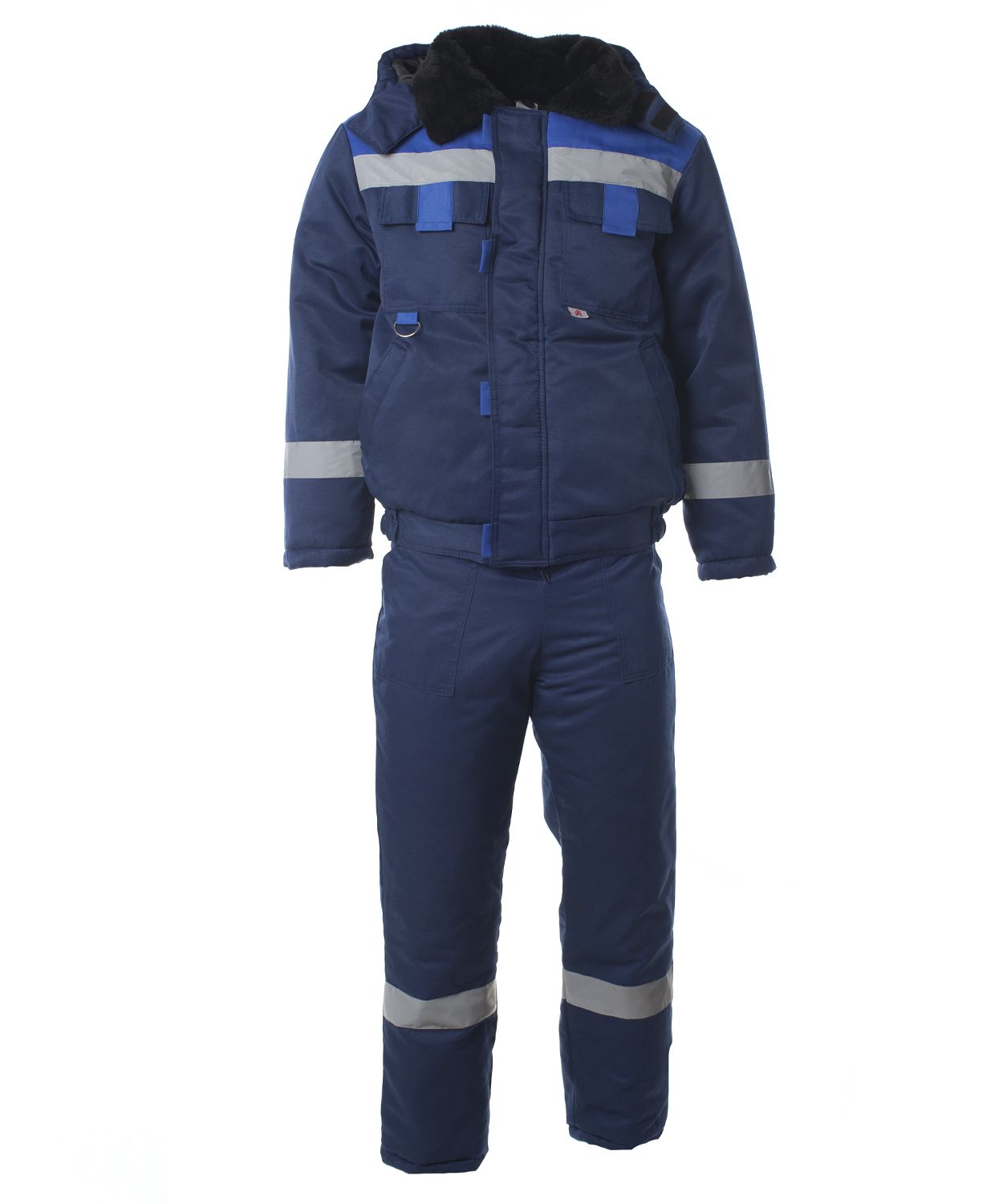 Комплект состоит из тёплой куртки и полукомбинезона. Костюм рассчитан на эксплуатацию в морозы на открытом воздухе и в неотапливаемых помещениях. Ткань устойчива к механическим воздействиям. Куртка отличается удлинённым кроем, хорошо защищает поясницу от продувания. Застёгивается на молнию с удобным большим язычком. Центральная застёжка защищена накладным ветрозащитным клапаном. В верхней части расположены косые врезные карманы. В нижней – вместительные накладные с клапаном на кнопках. Полукомбинезон оснащён эластичной вставкой в талии. Лямки регулируются пряжками по длине.